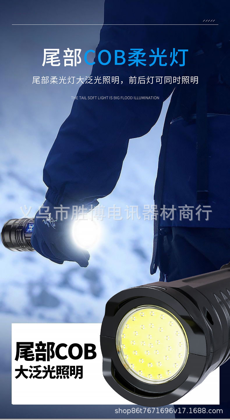 Lintera láser blanca de explosión de sonido de charla de luz brillante zoom remoto cola cob usuario doméstico linterna láser externa