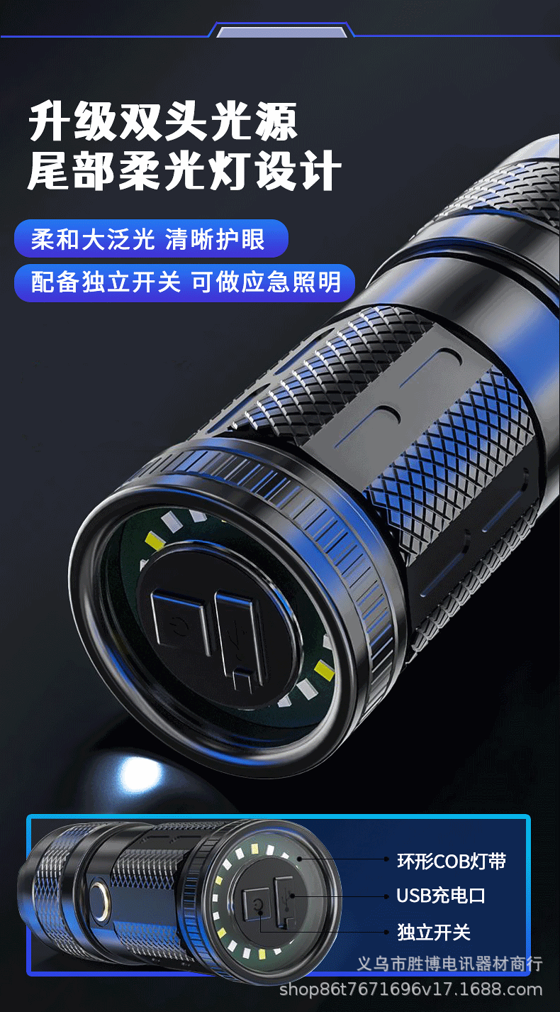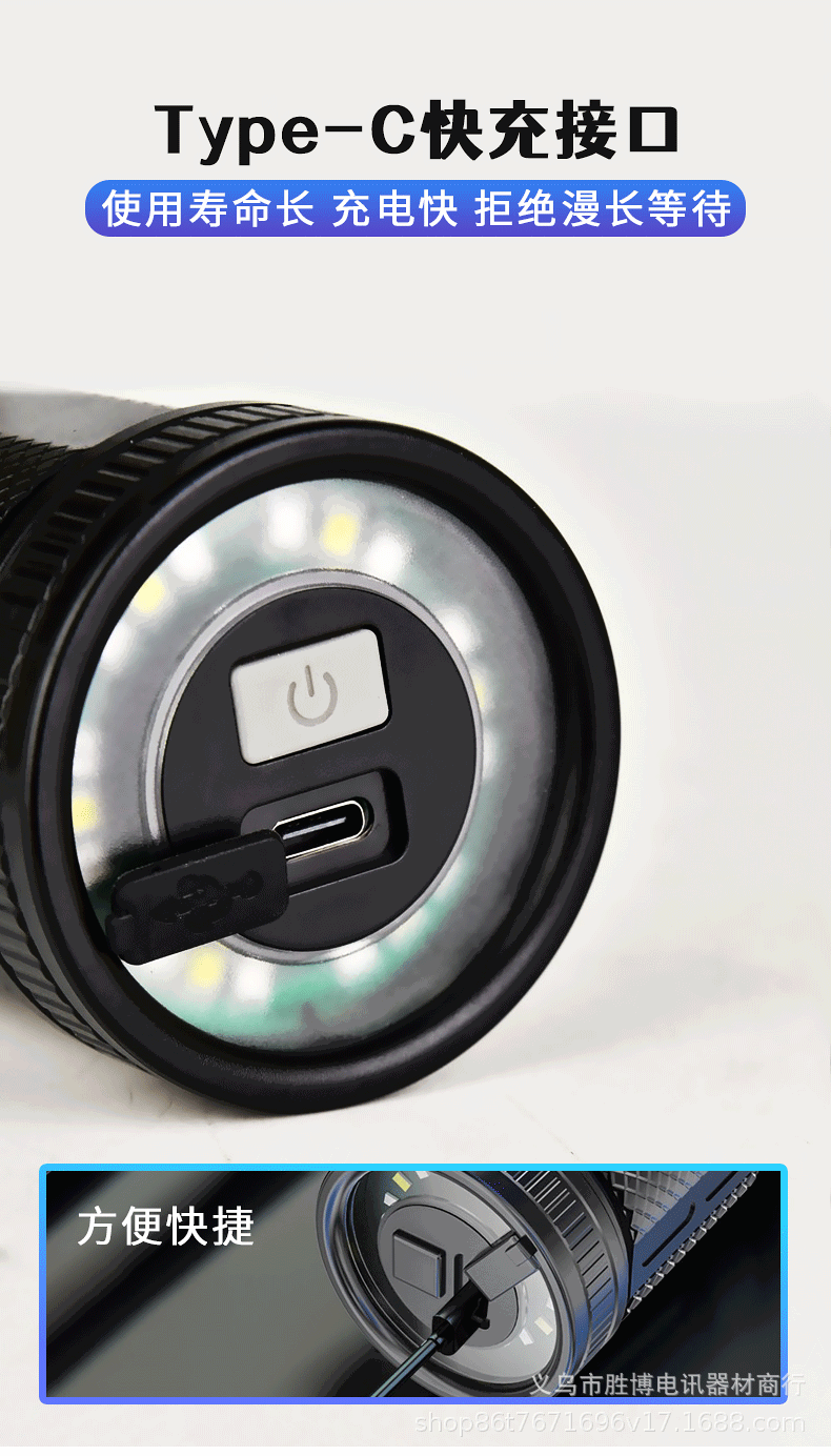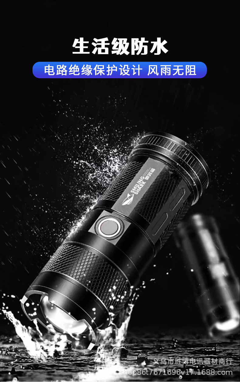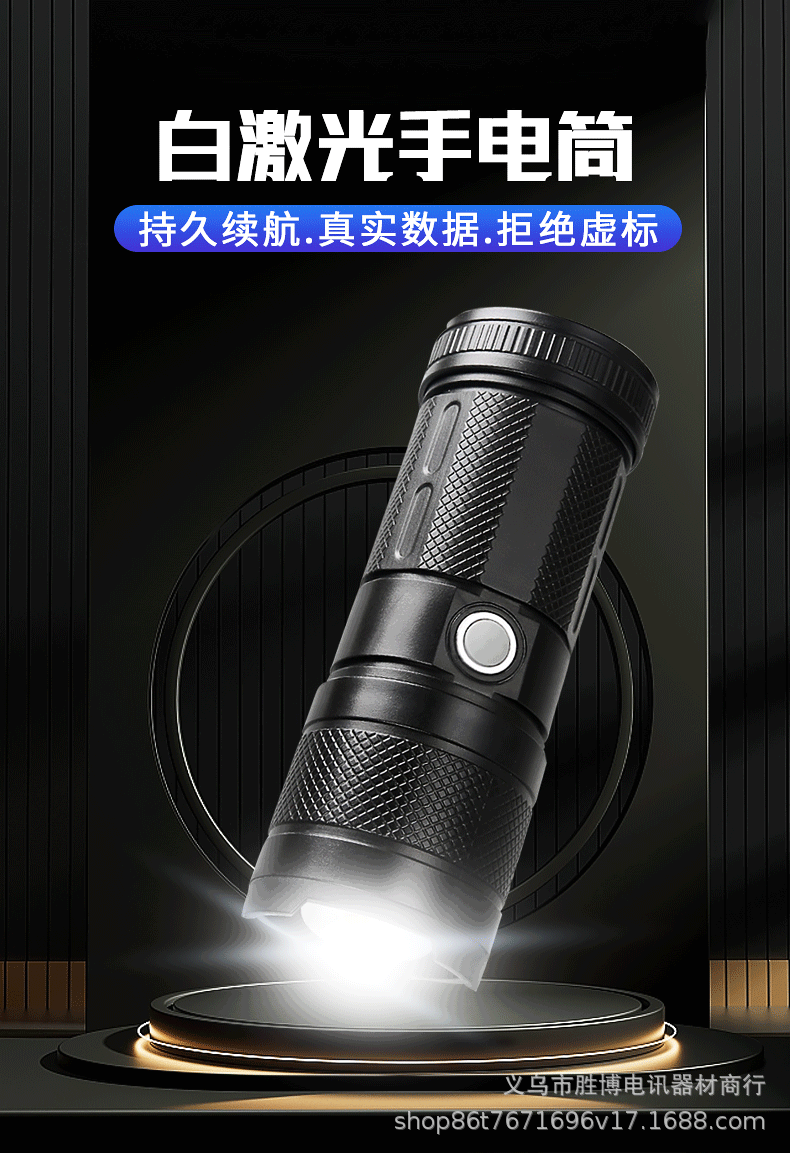 Transfronterizos láser blanco luz intensa linterna led carga iluminación doméstica al aire libre zoom linterna de plástico