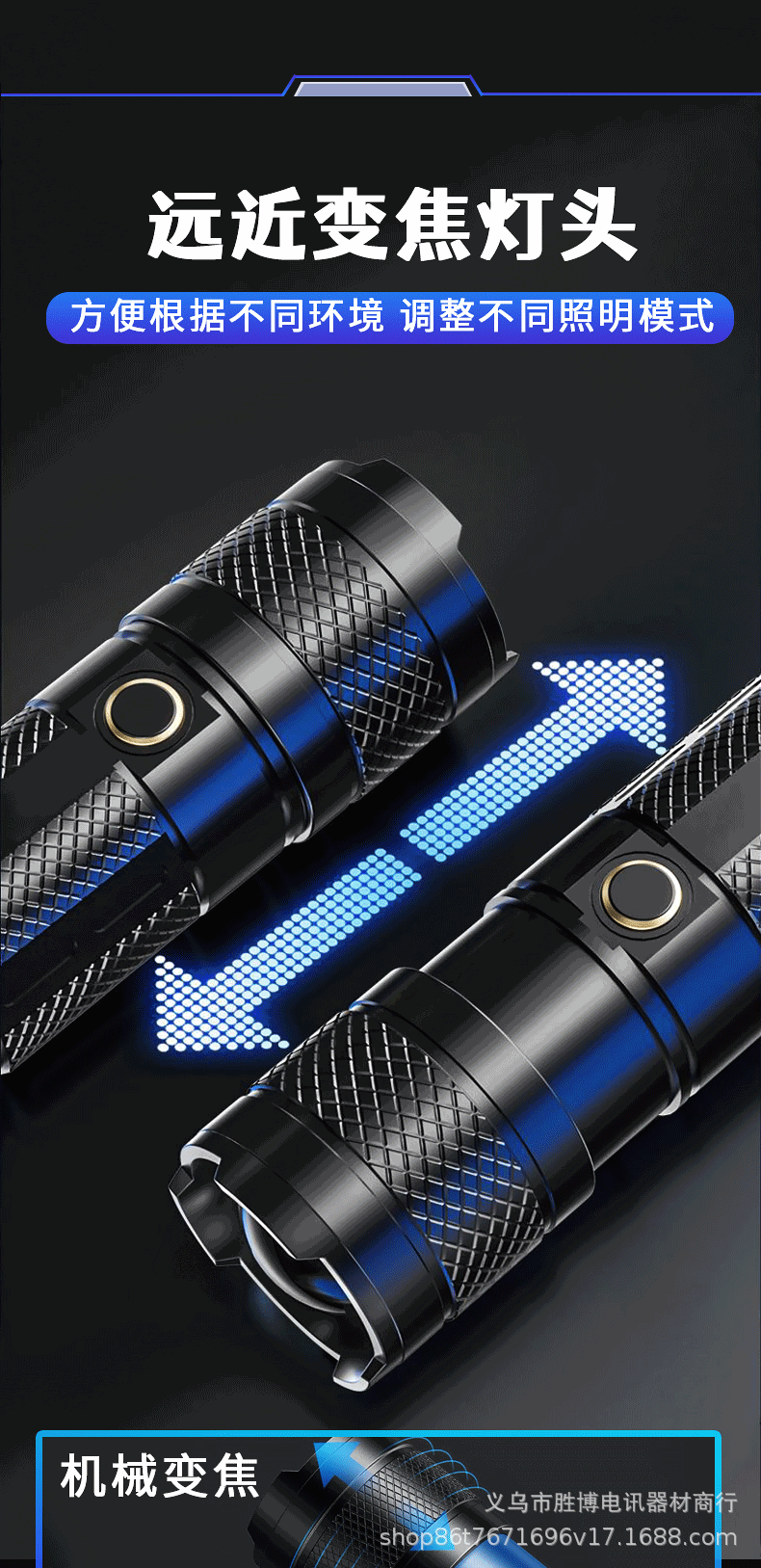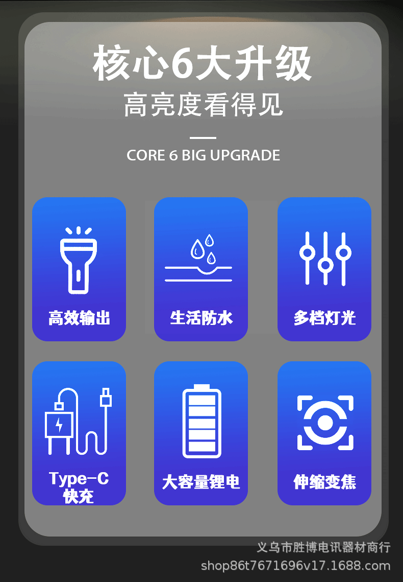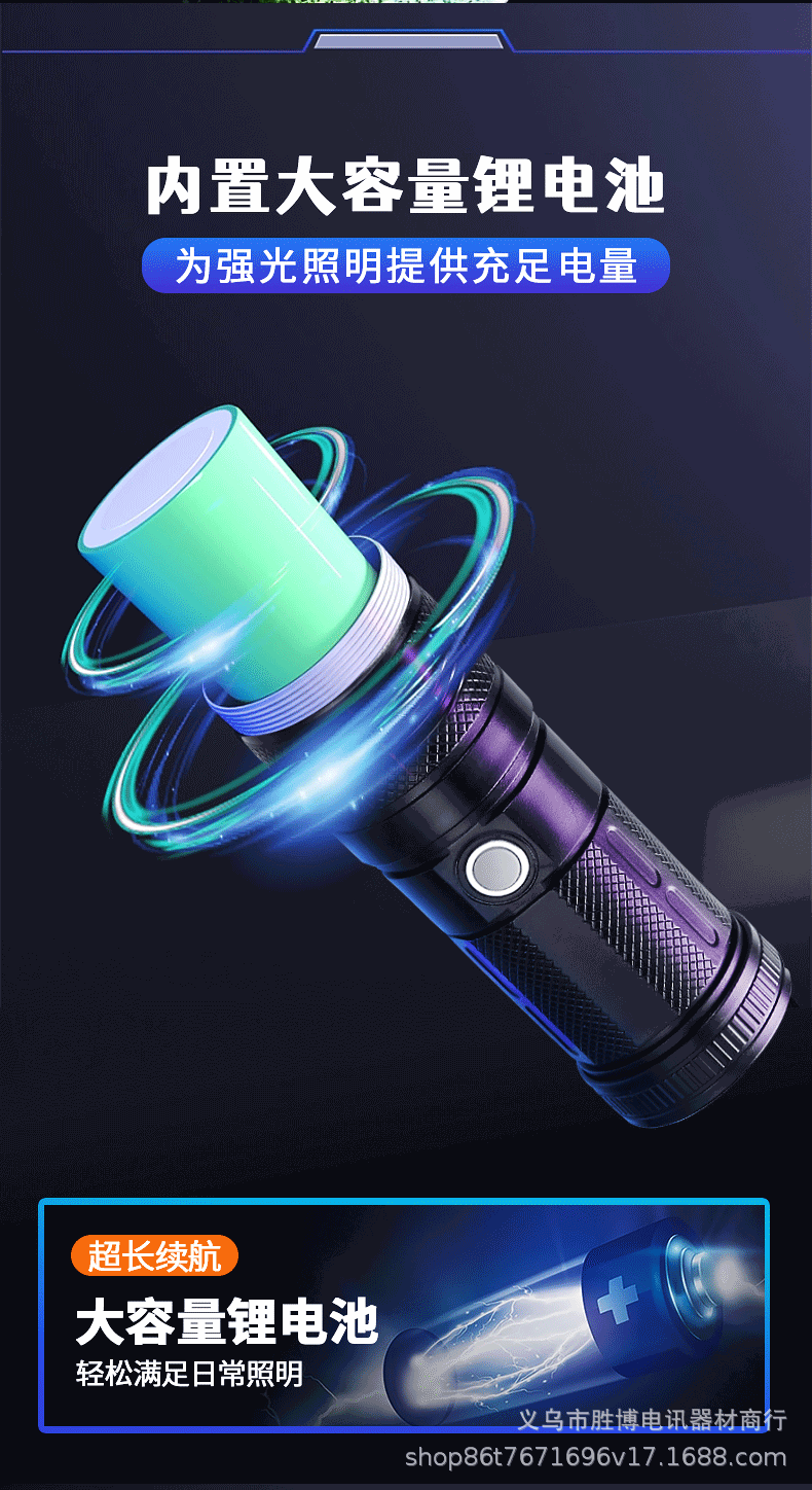 Transfronterizos láser blanco luz intensa linterna led carga iluminación doméstica al aire libre zoom linterna de plástico