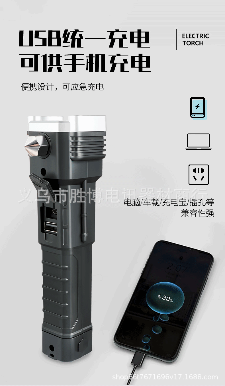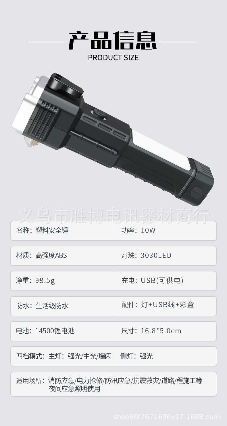 Lintera LED de luz intensa multifuncional recargable lámpara lateral portátil y durable ultra brillante antorcha de iluminación remota