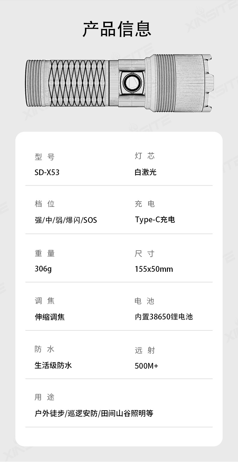 Nueva linterna transfronteriza luz fuerte láser blanco de larga duración linterna portátil al aire libre de alta potencia