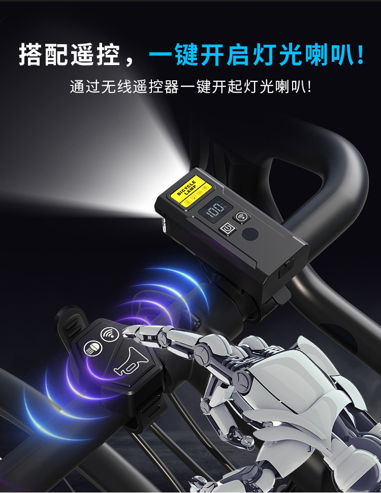 Transfronterizo nueva luz inteligente nocturna luz de bicicleta puede ser controlada remotamente con altavoz pantalla digital USB recargable luz de bicicleta nocturna