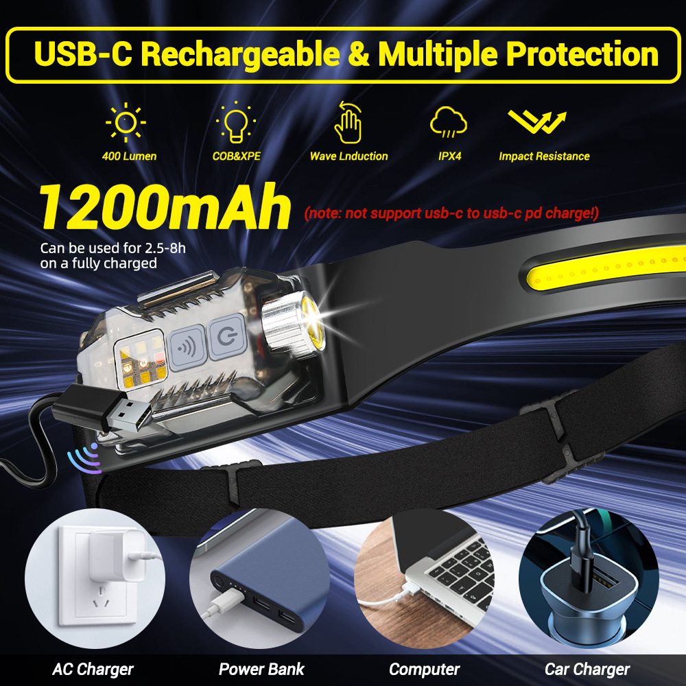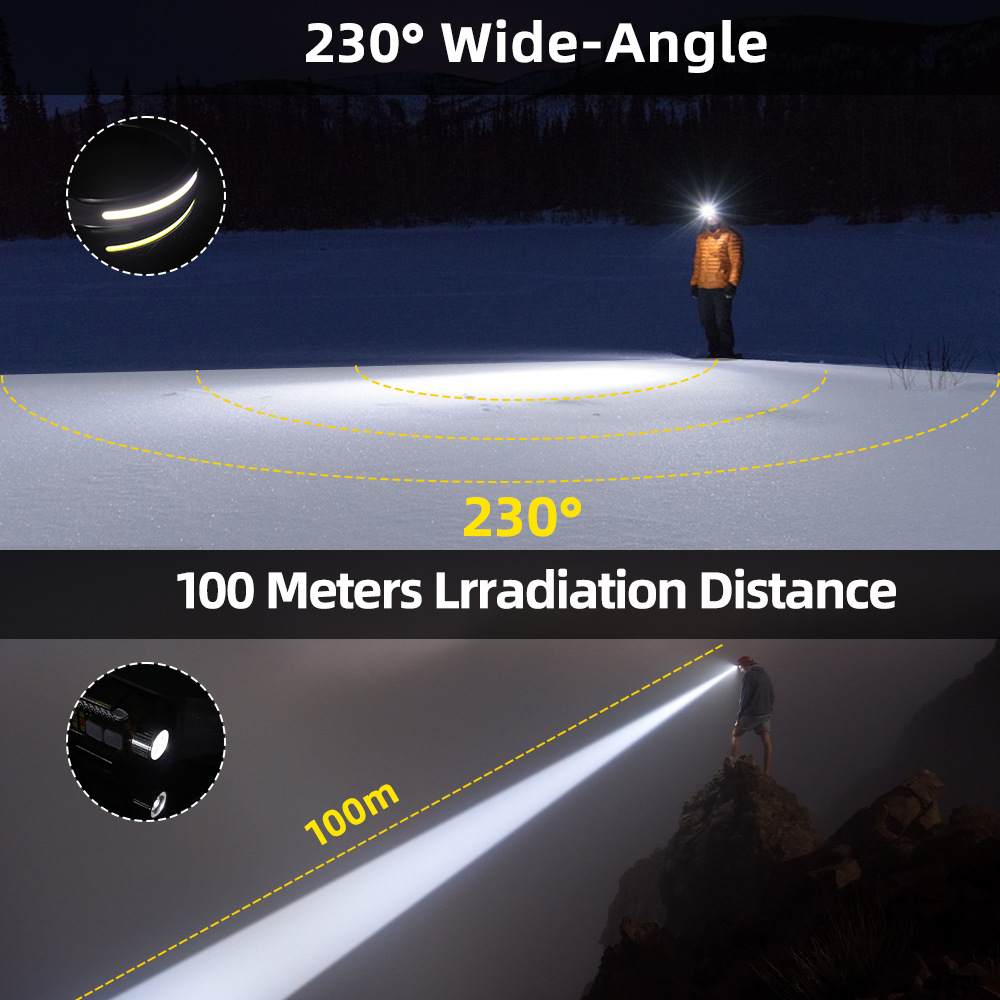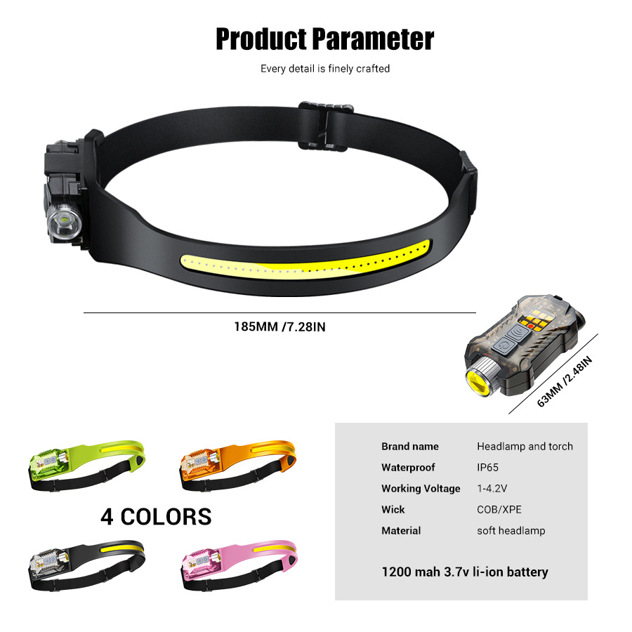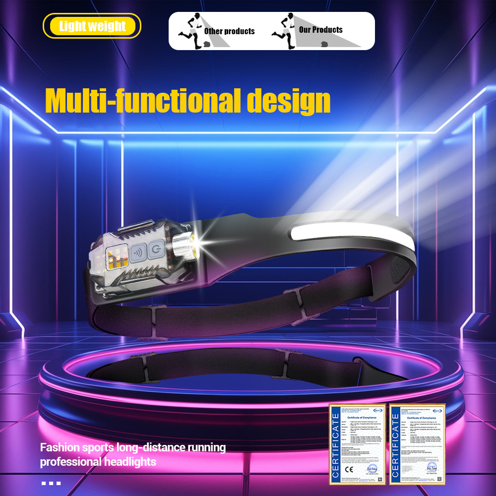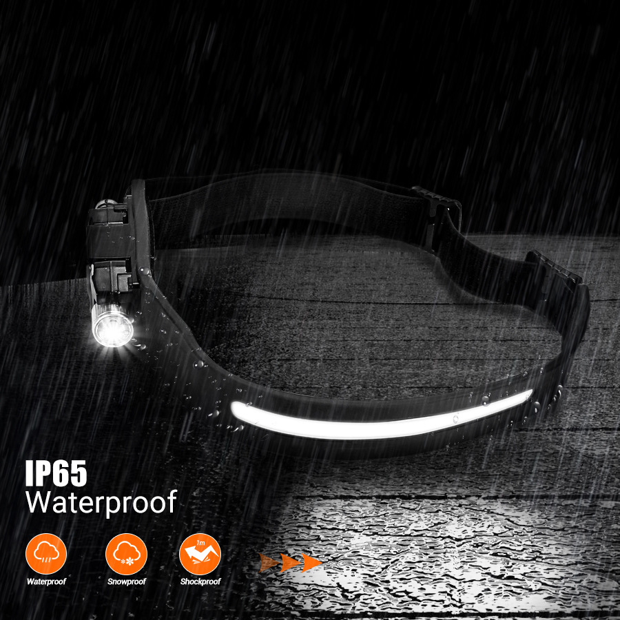 Transfronterizos al aire libre agitando inducción COB faro linterna 2 en 1 correr por la noche pescar luz alta luz luz alta cabeza