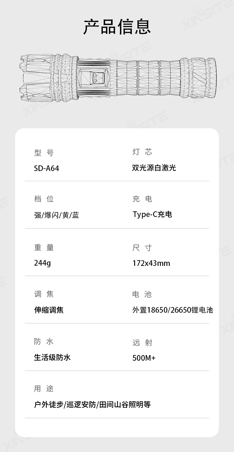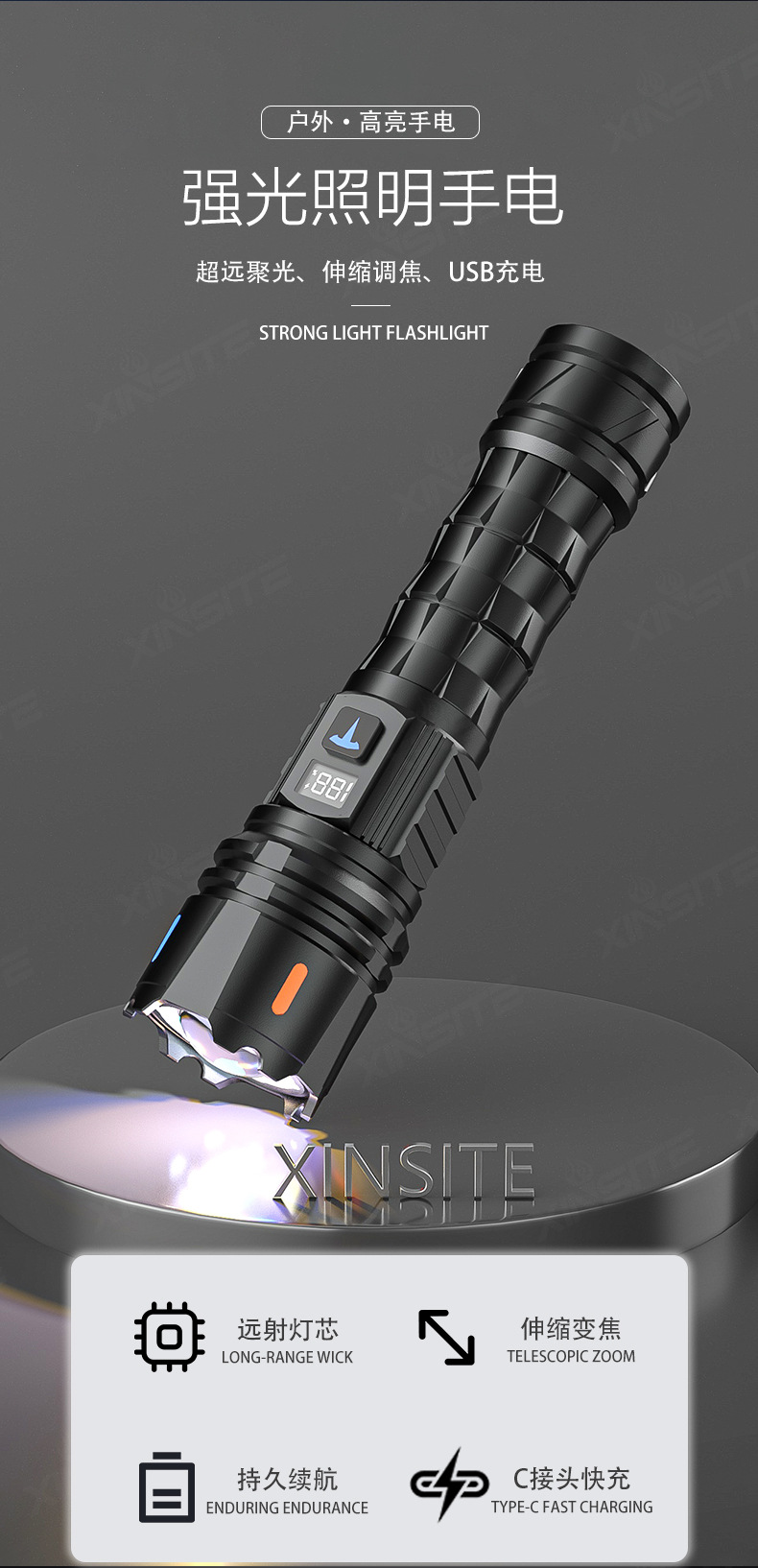 Transfronterizos nueva linterna de aluminio al aire libre doble fuente de luz láser blanco ultra brillante táctica linterna de mano