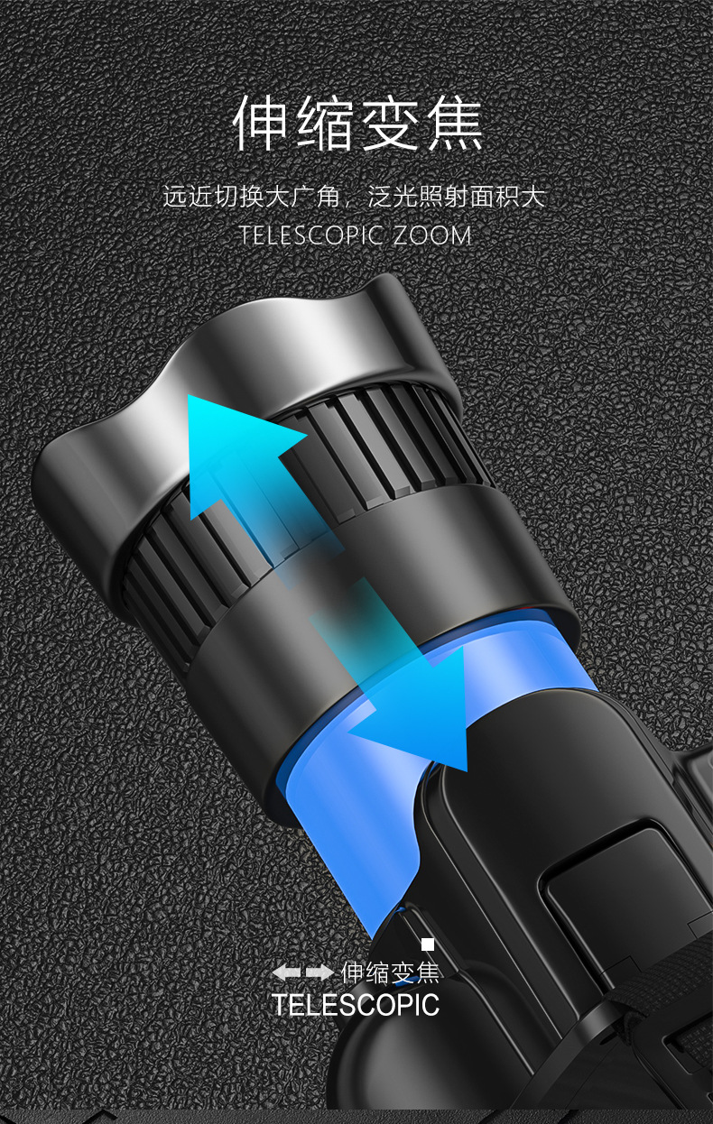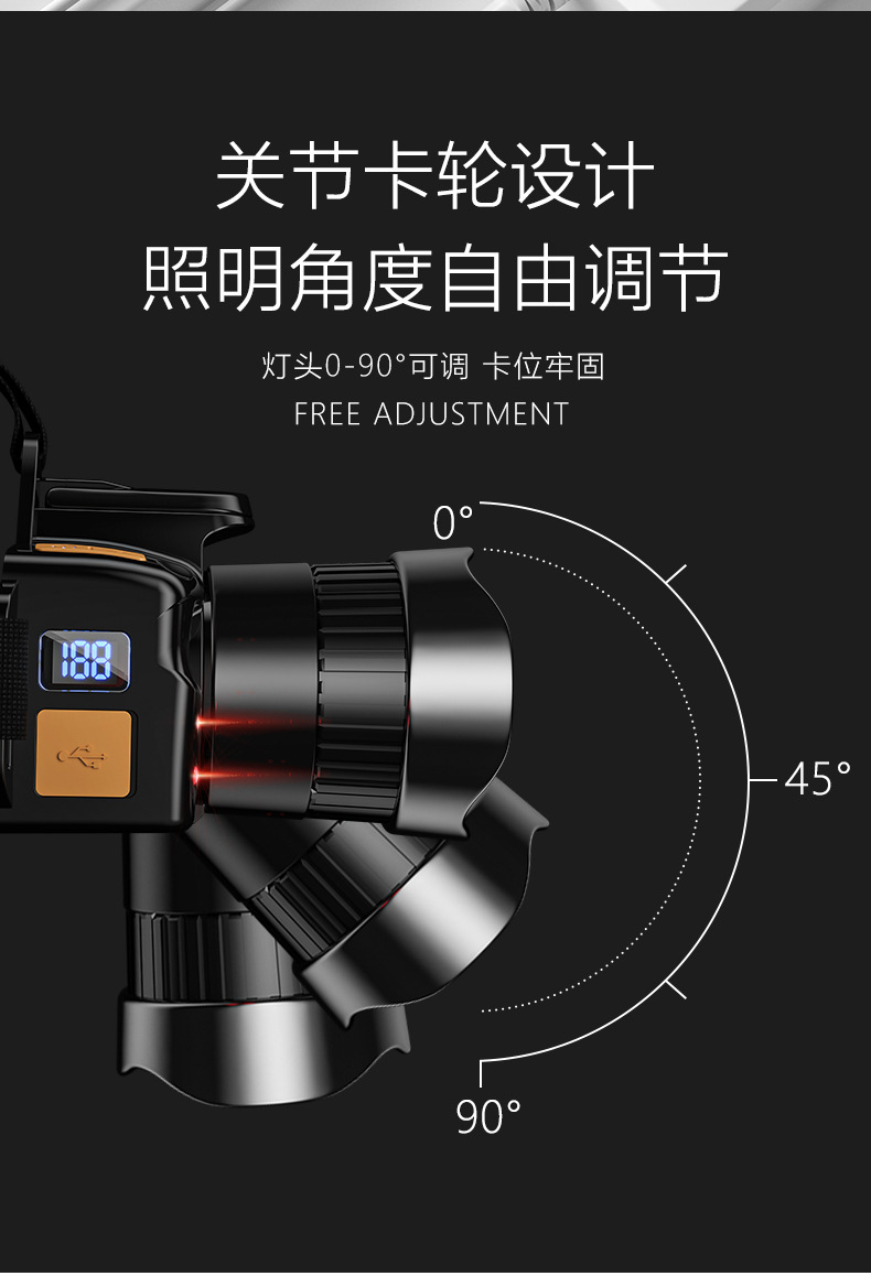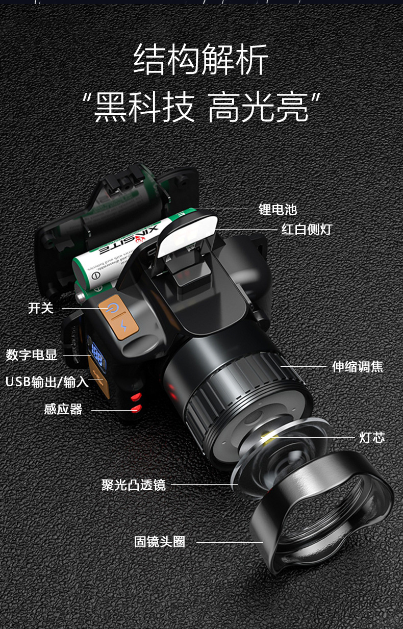 Luz transfronteriza al aire libre luz de pesca nocturna inducción lámpara de mina carga de emergencia USB iluminación inteligente montada en la cabeza faro zoom
