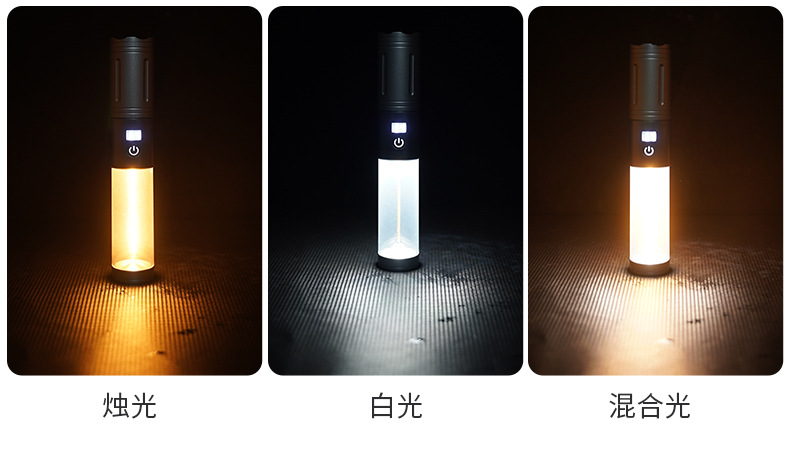 Nueva linterna multifuncional al aire libre iluminación de campamento de tungsteno linterna de carga lámpara de trabajo mini linterna de campamento