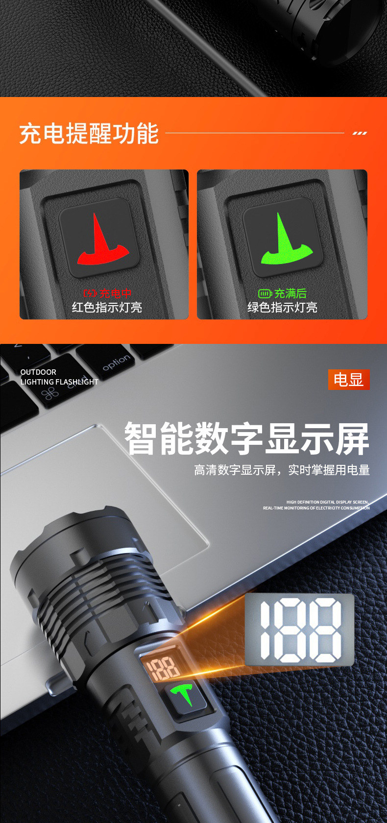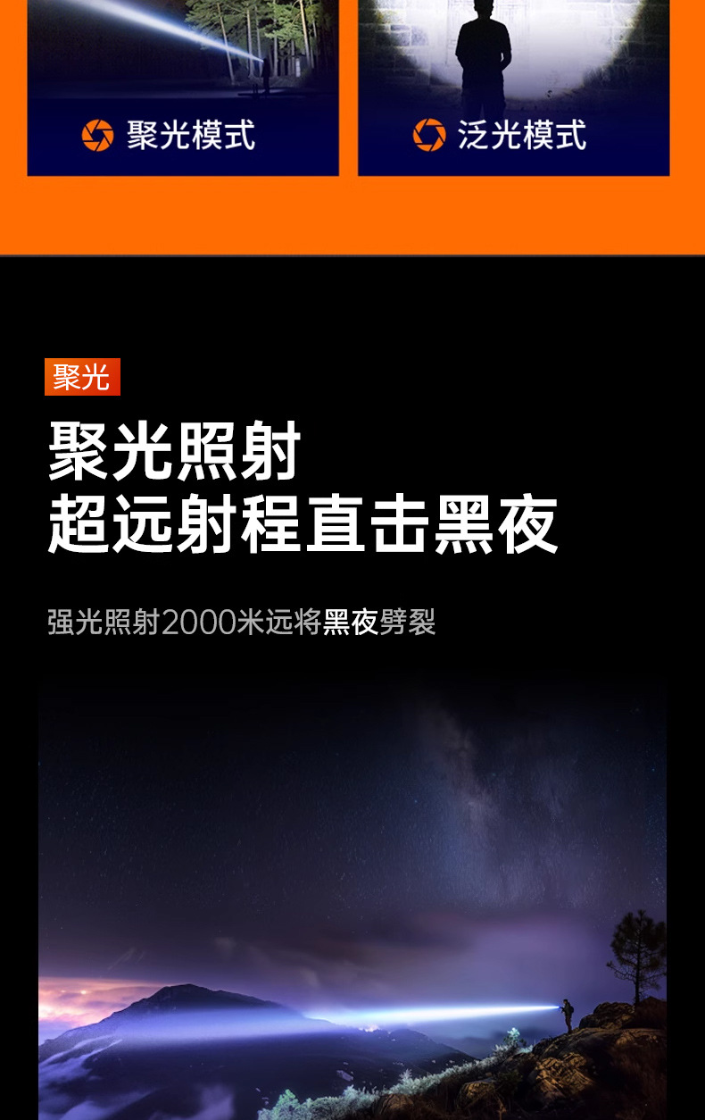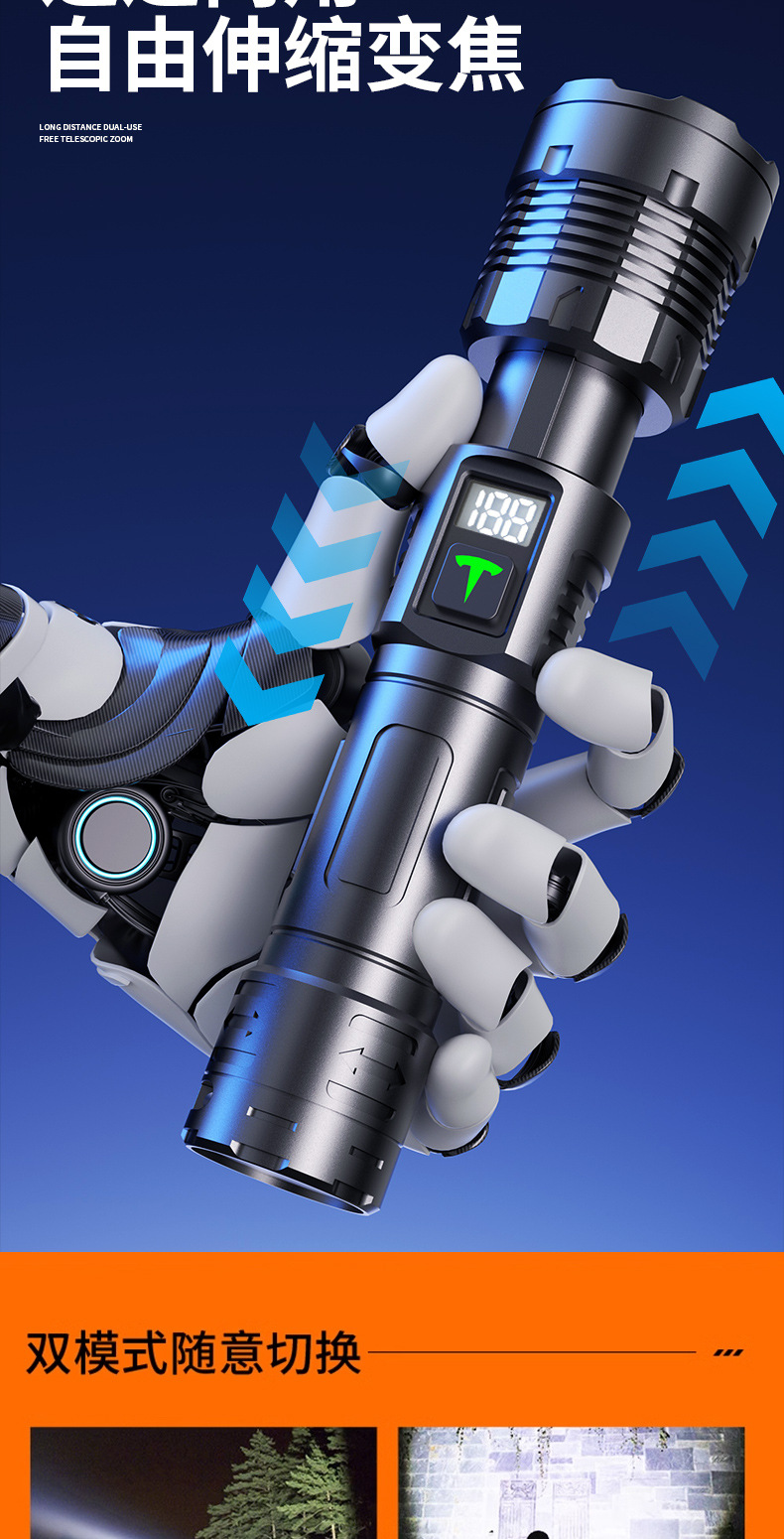 Antorcha láser multifuncional de visualización digital blanco amarillo doble fuente de luz telescópica zoom portátil al aire libre luz fuerte iluminación linterna