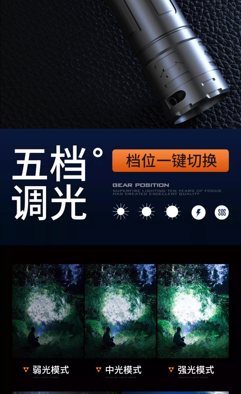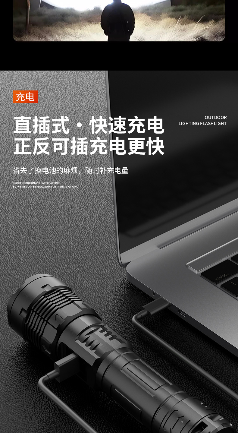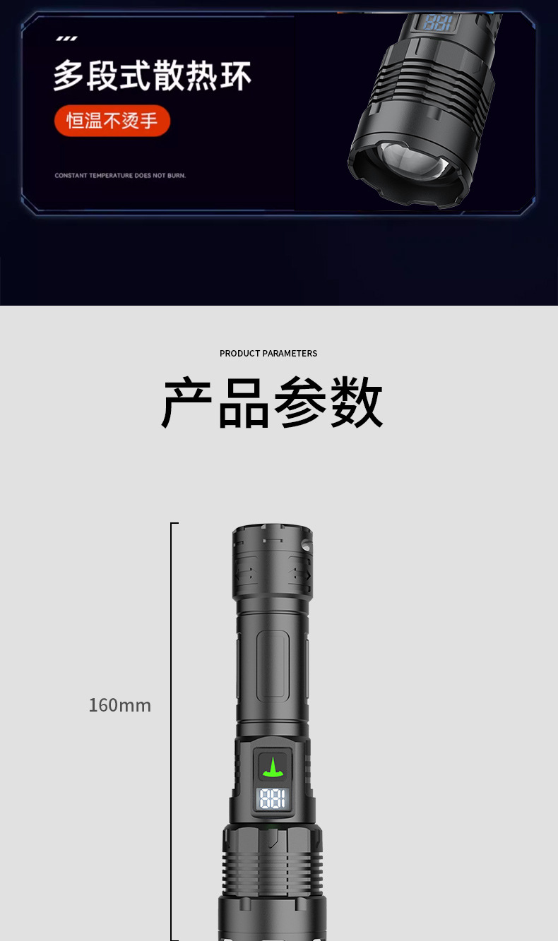 Antorcha láser multifuncional de visualización digital blanco amarillo doble fuente de luz telescópica zoom portátil al aire libre luz fuerte iluminación linterna