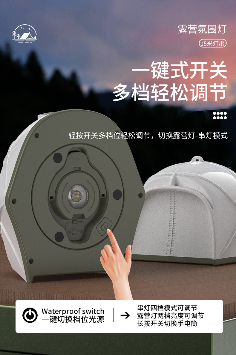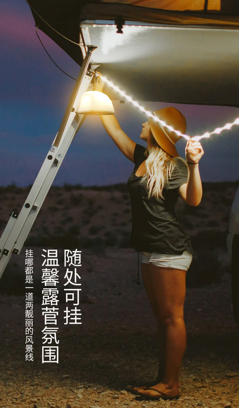 Luces de carpa al aire libre, atenuación infinita, batería de larga duración, luces para acampar, luces para la atmósfera de la cortina del cielo, cinta métrica de forma de carpa, luces para exteriores