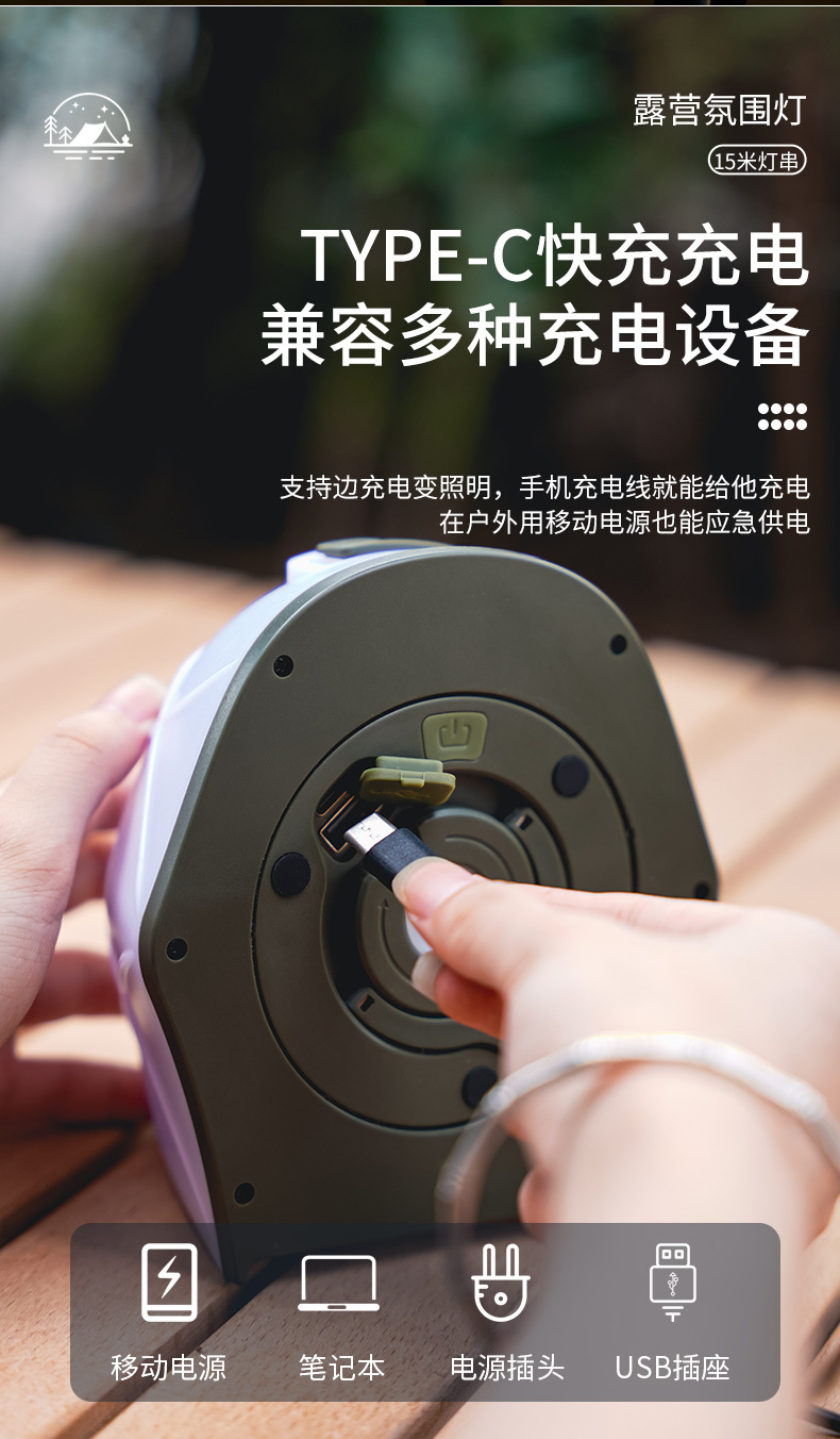 | Colores | Lámpara de tienda 15 metros (cálida y colorida) 4000mah |