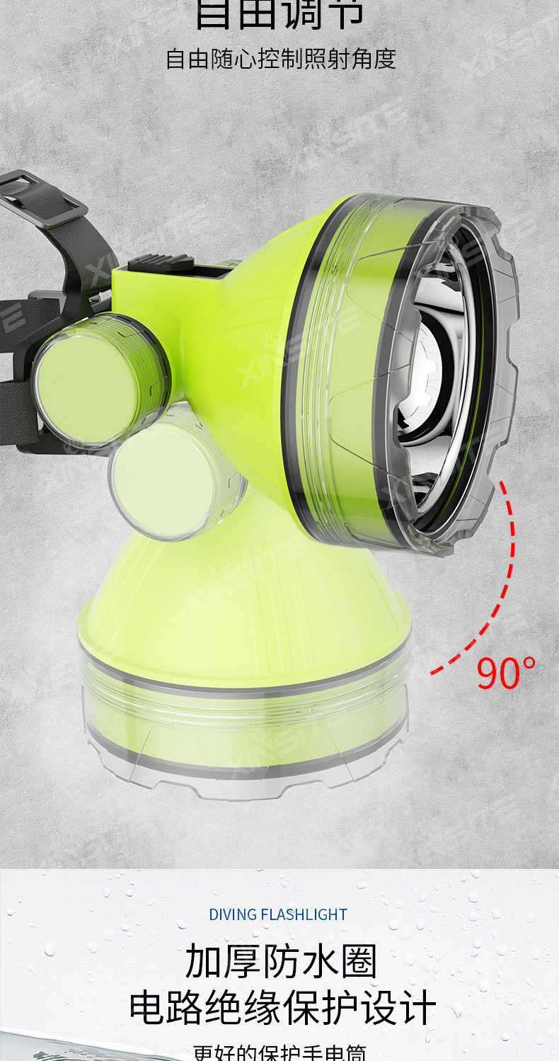 Transfronterizos al aire libre led foco fijo buceo luz fuerte larga duración cabeza recargable batería resistente al agua faro de pesca