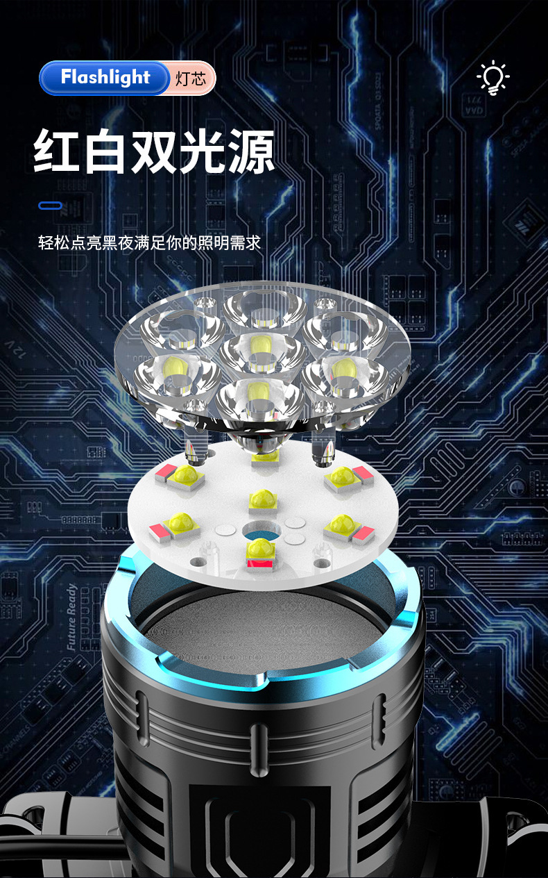Transfronterizos al aire libre iluminación LED de alta luz headlight deportivo USB carga a prueba de agua pesca lámpara de mina