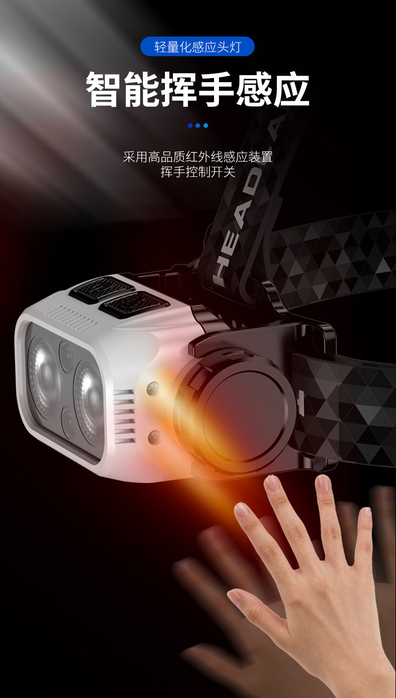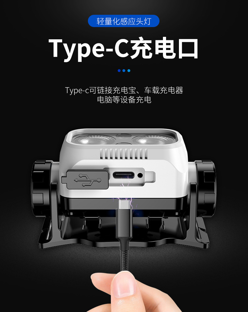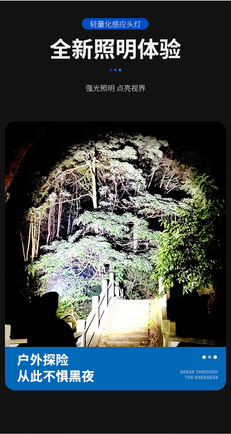 Lámpara de cabeza calva fuerte larga duración de la batería superbrillante carga inductiva LED iluminación portátil linterna al aire libre pesca nocturna ligera portátil