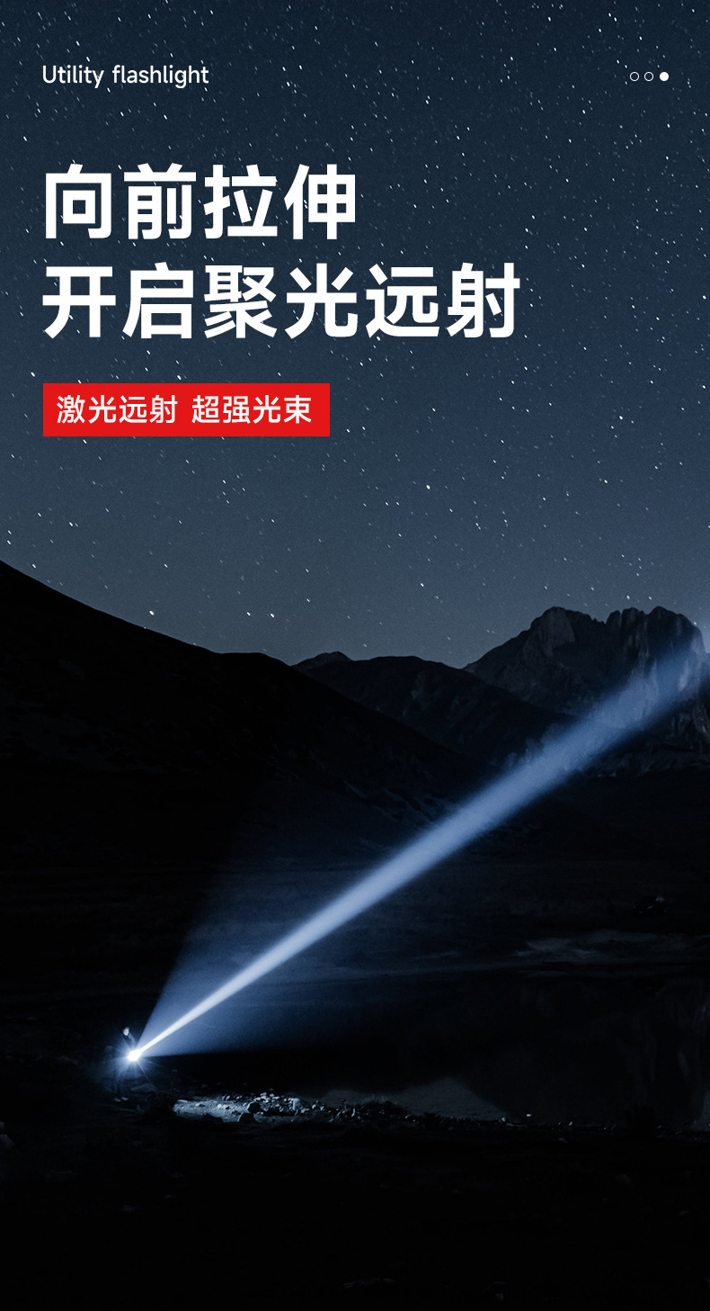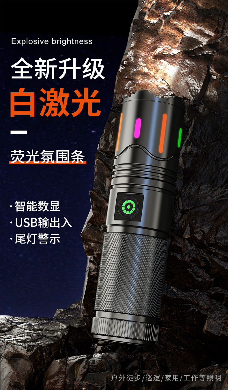 Nuevo tipo de linterna transfronteriza multifuncional láser blanco cañón láser telescópico enfoque de luz intensa luz de luz portátil con luz trasera