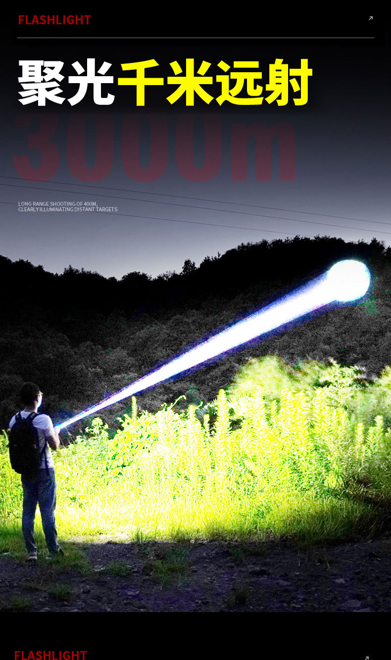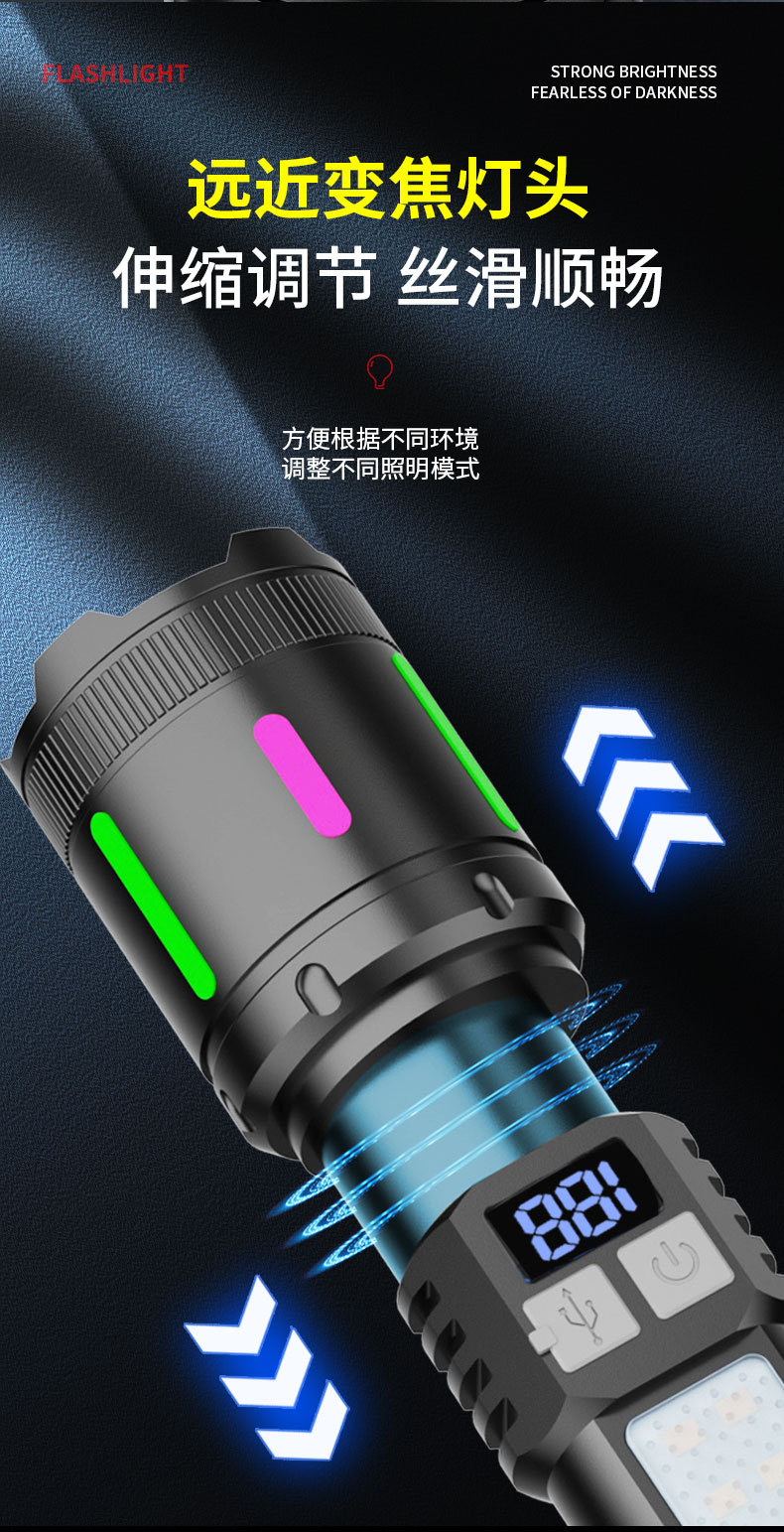 Nueva linterna láser blanca luz fuerte carga zoom de cola de disparo remoto cob usuario fuera de la casa linterna multifuncional