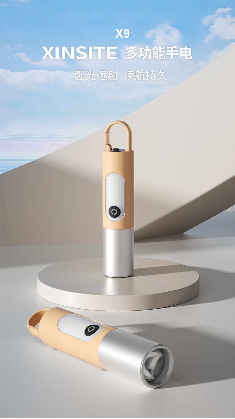 Nuevo al aire libre multi-función linterna escalada gancho P50 recargable fuerte luz linterna camping pantalla trabajo luz lateral