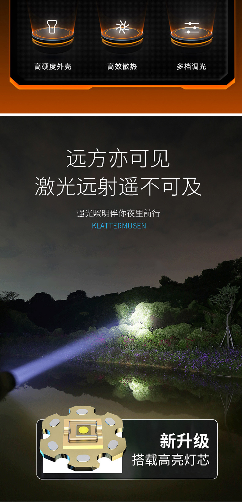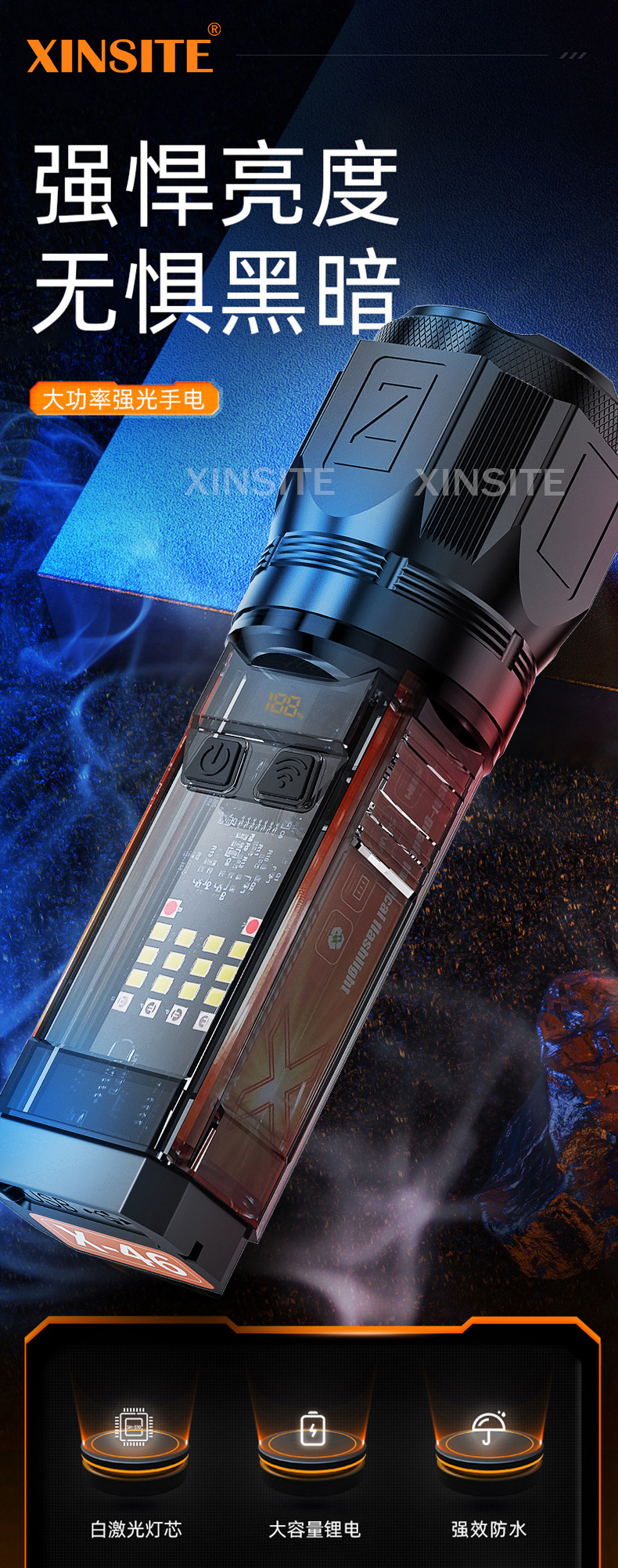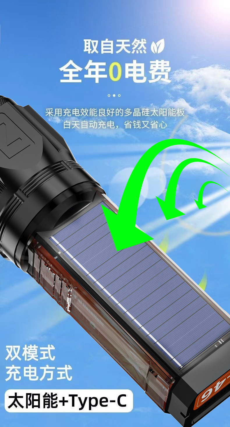 Linterna láser blanca transfronteriza transfronteriza de luz fuerte Linterna solar multifunción de carga súper brillante y largo alcance