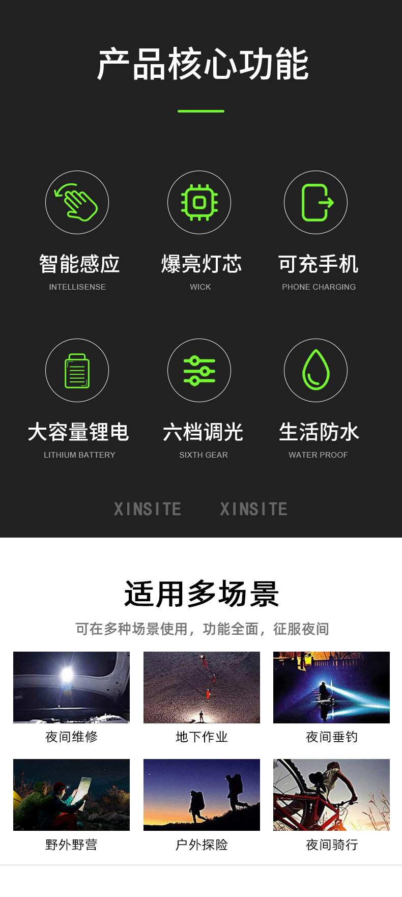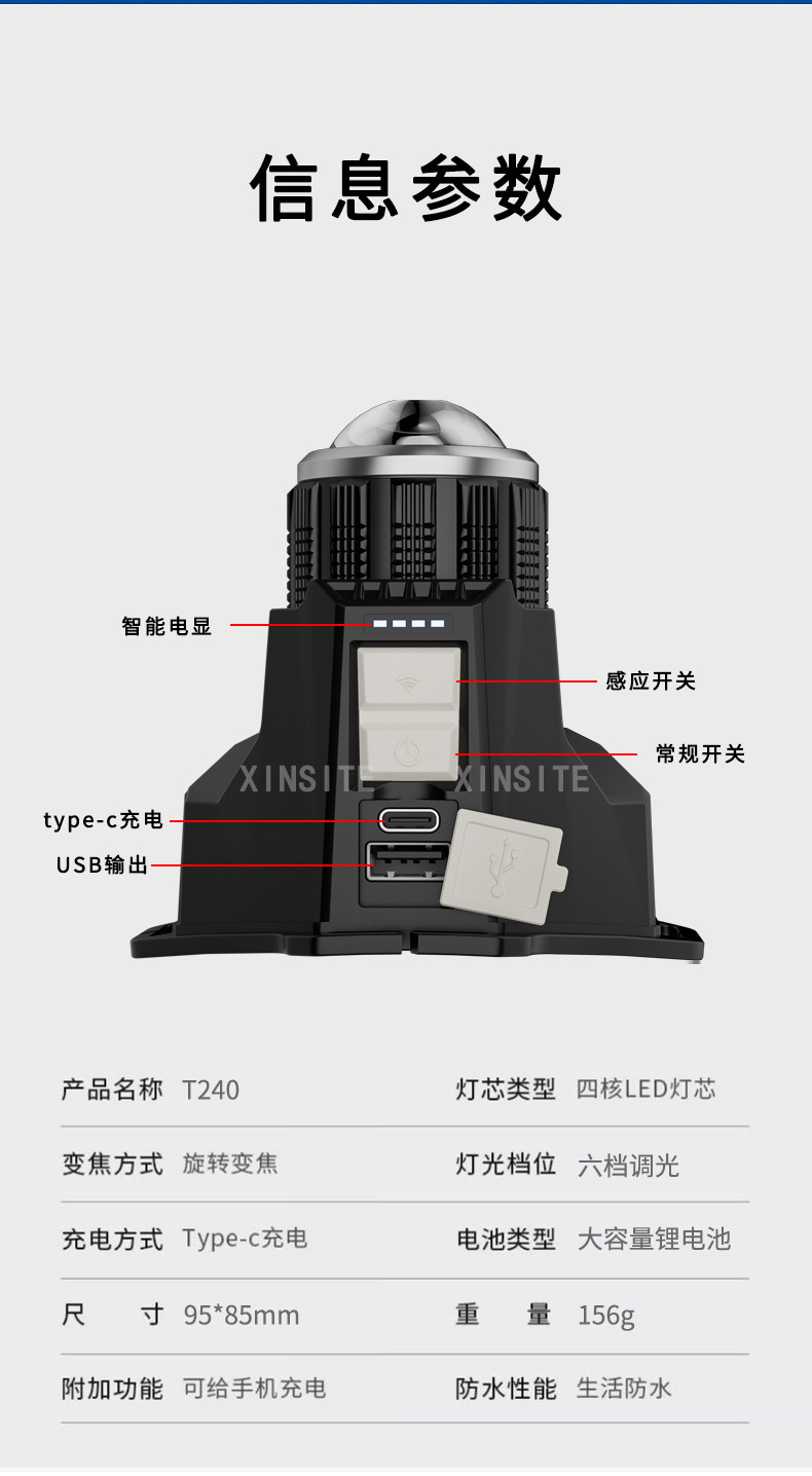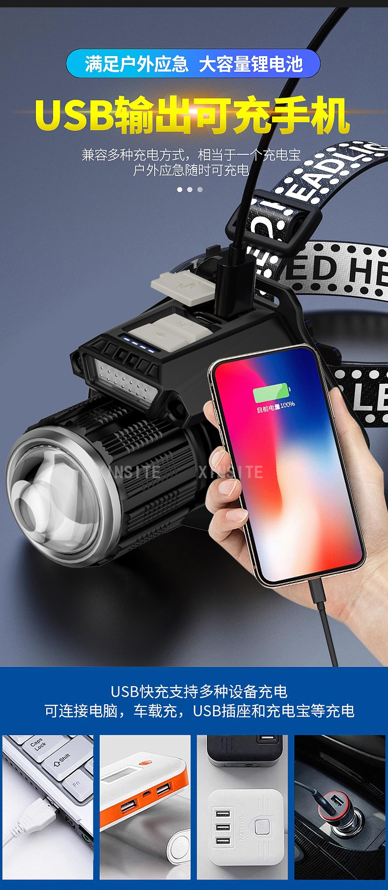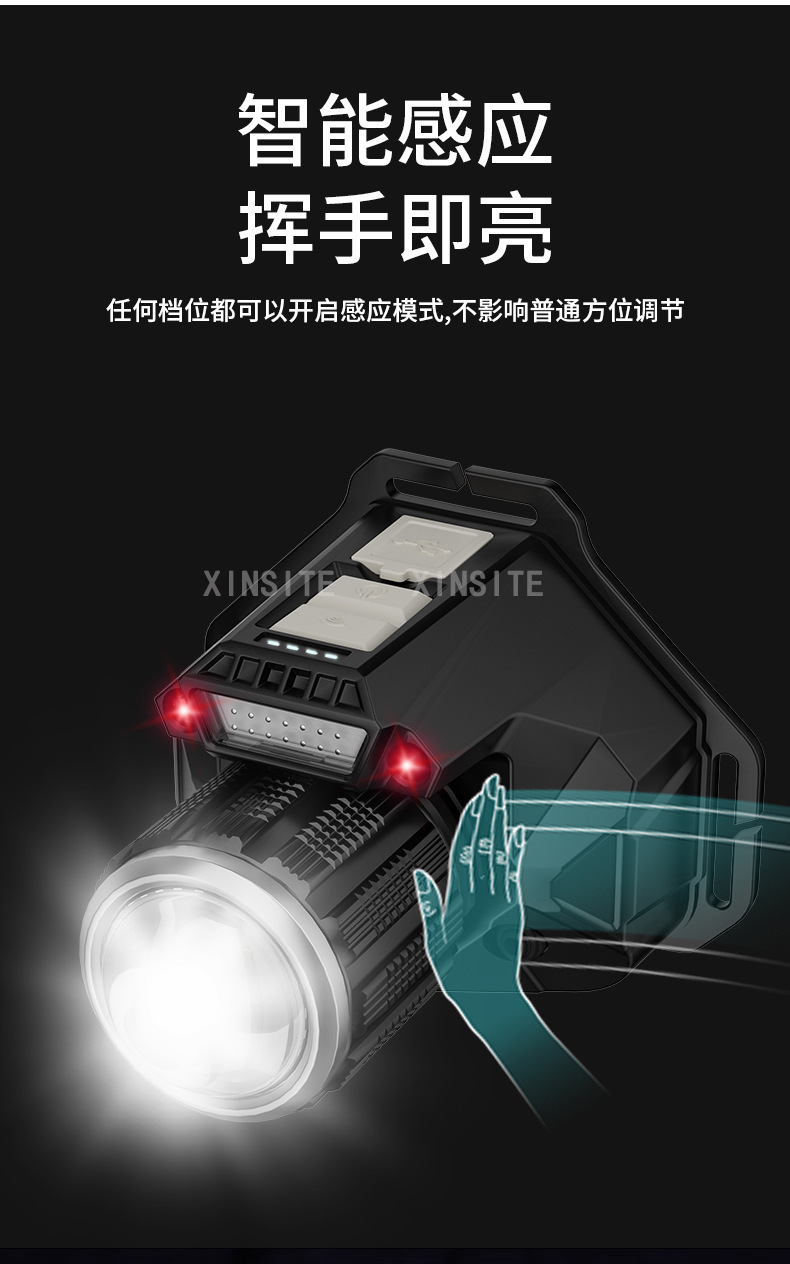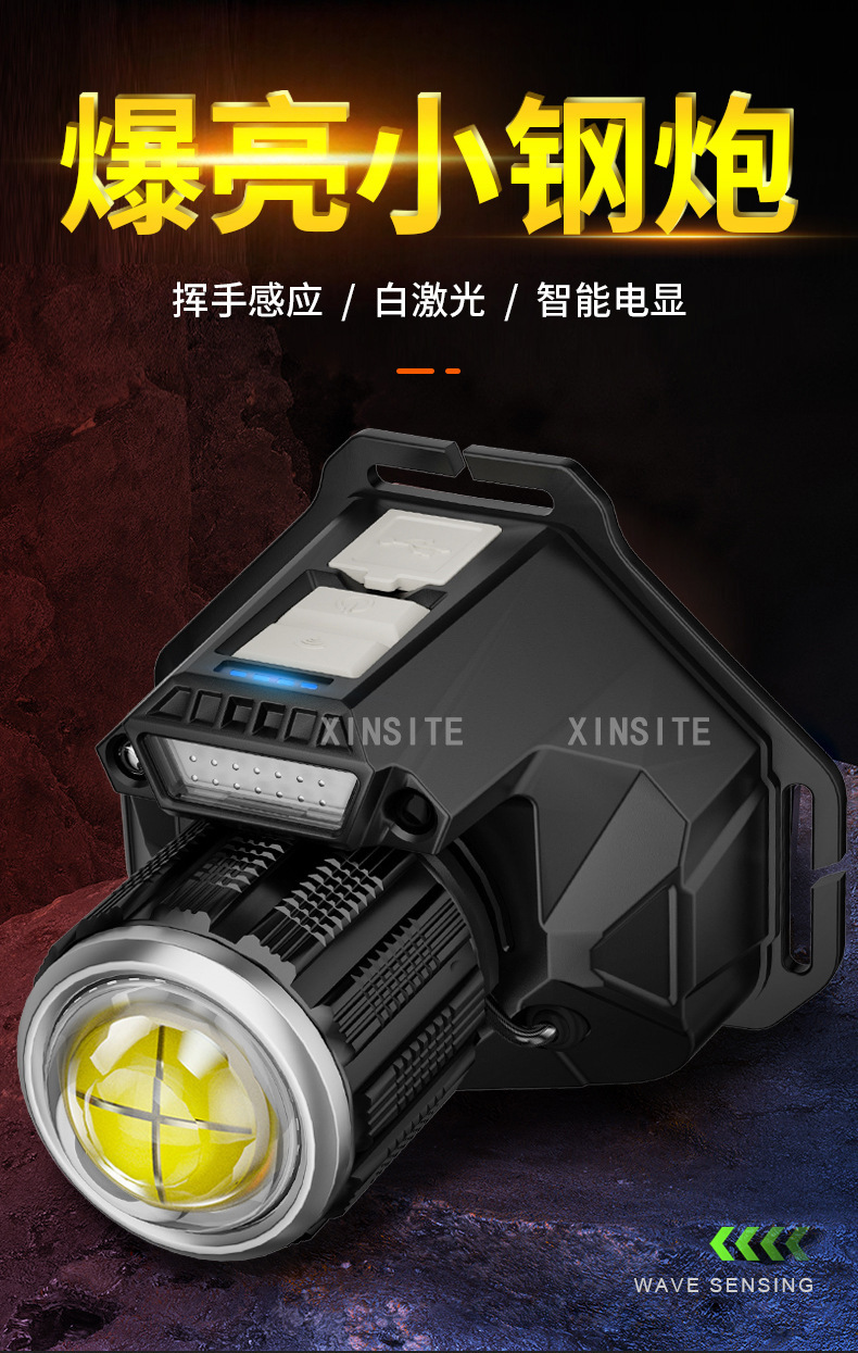 Nuevo blanco al aire libre láser lámpara de inducción faro cabeza montada linterna luz fuerte tiro largo noche pesca faro