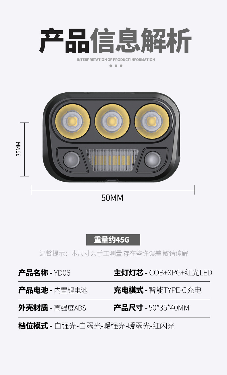 Transfronterizo nuevo faro para correr al aire libre ligero mini fuente de luz múltiple Faro de pesca larga resistencia