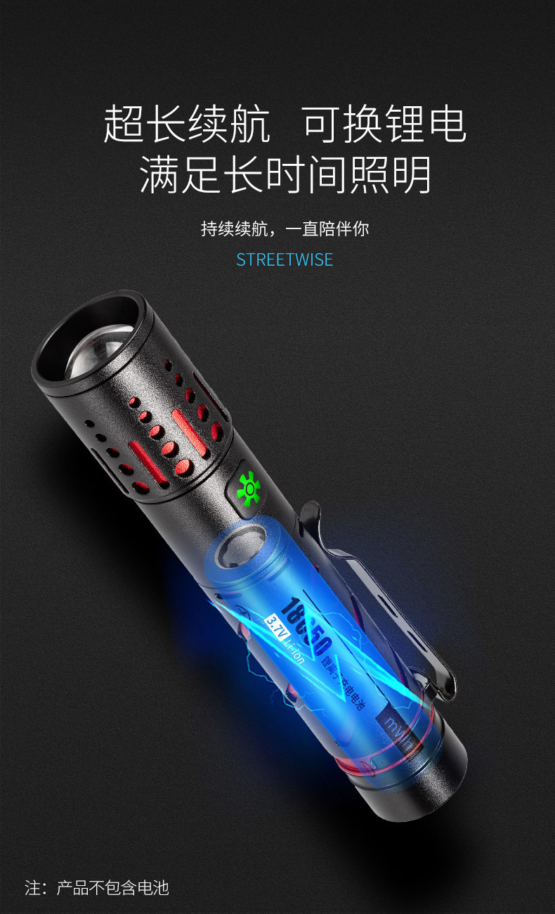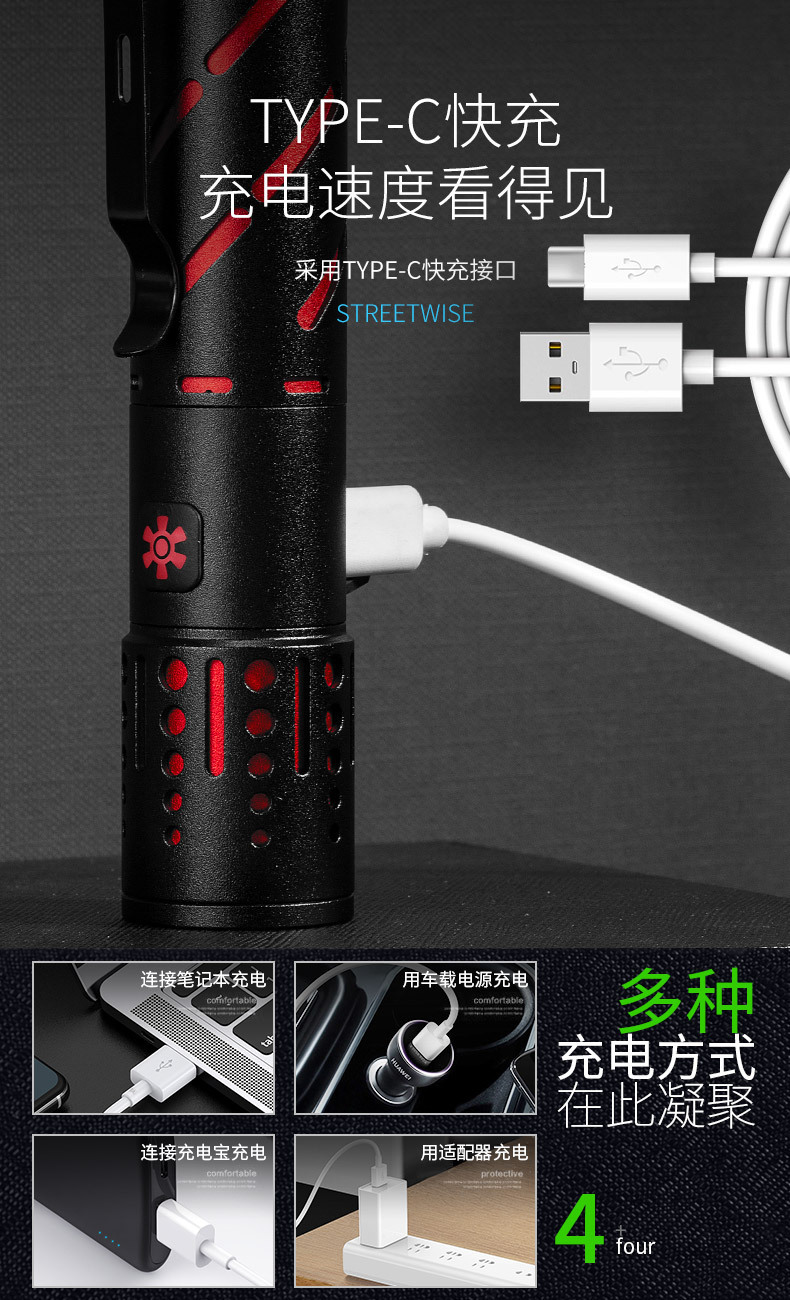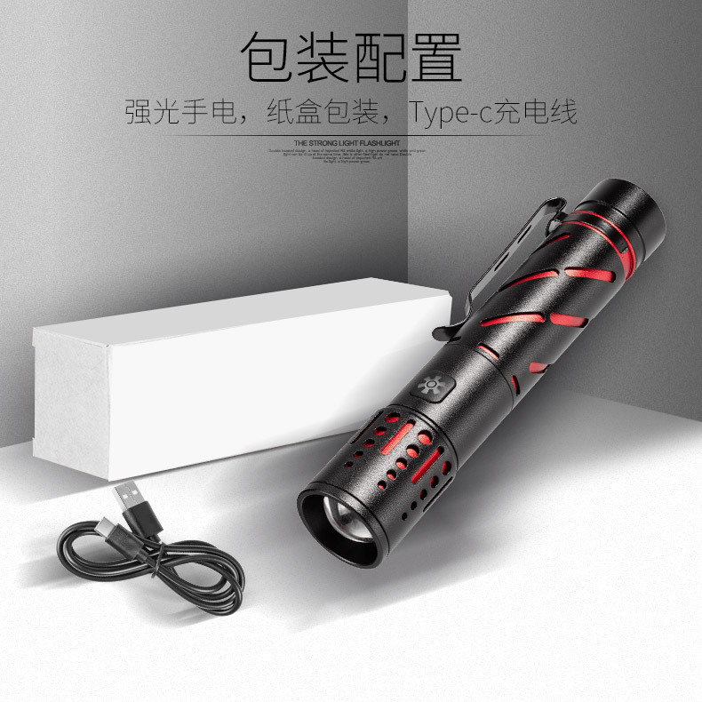 Nueva luz de conducción al aire libre batería de litio incorporada USB recargable zoom linterna luz de iluminación linterna LED