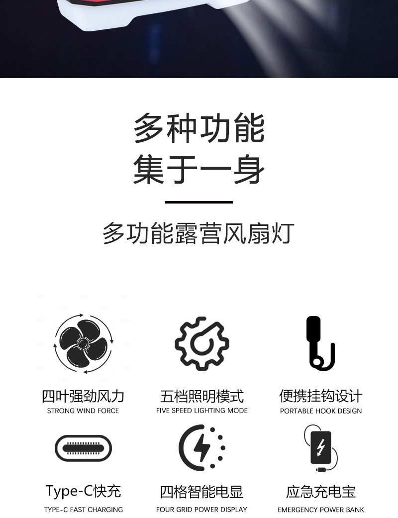 Transfronterizo al aire libre portátil ventilador luz tienda escritorio dormitorio camping portátil pequeño ventilador