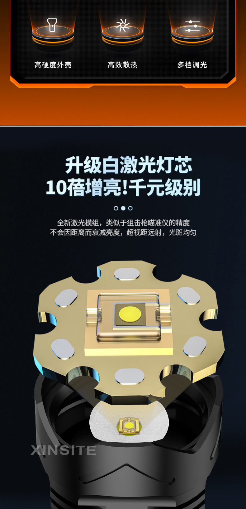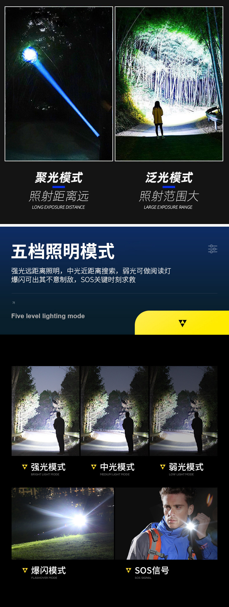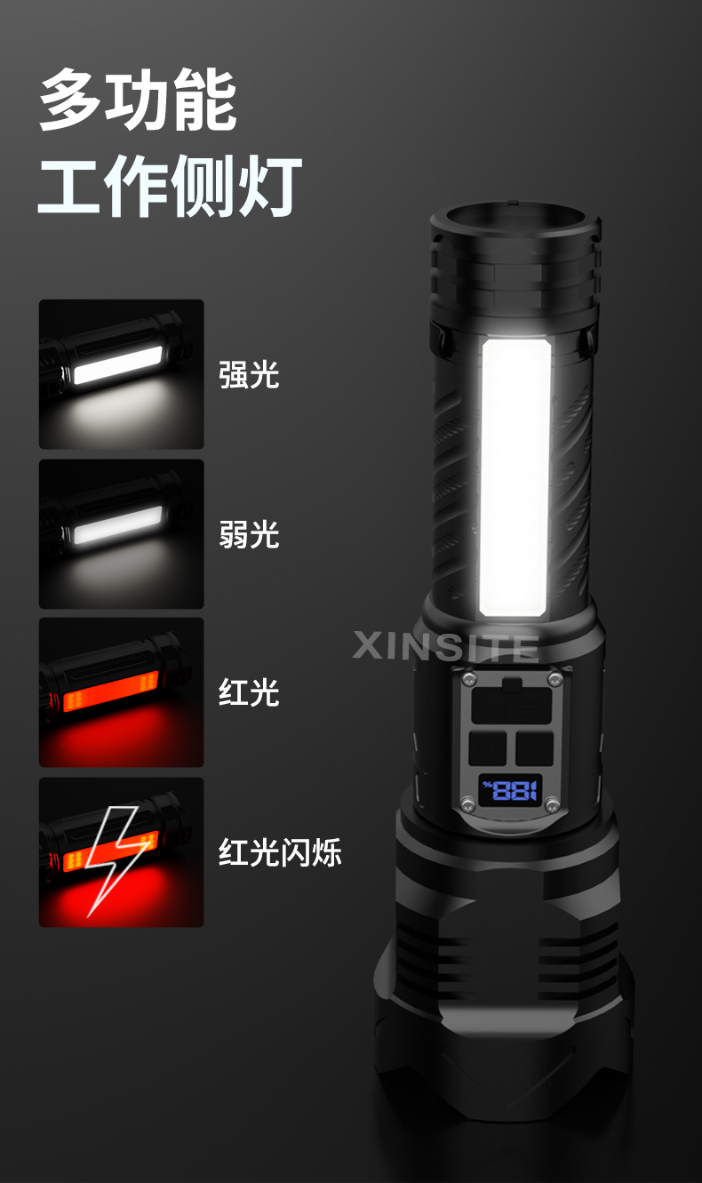 Transfronterizo nuevo tipo de linterna de visualización digital al aire libre con láser recargable de transmisión remota doble linterna de zoom telescópico