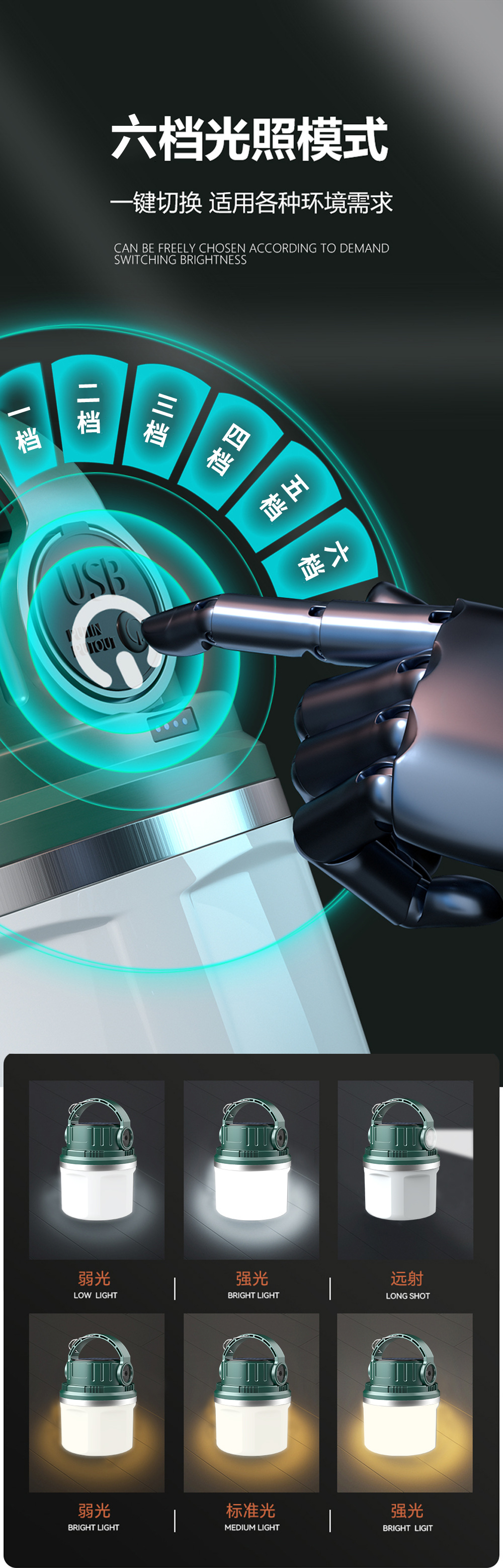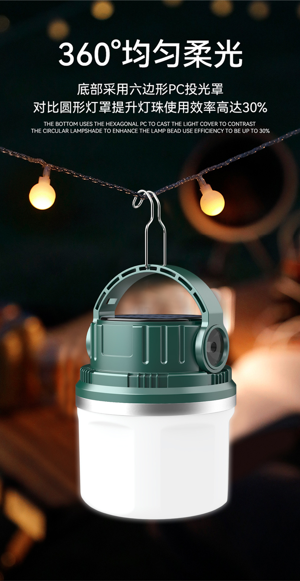 Transfronterizo al aire libre portátil de gran capacidad lámpara de camping multi-función solar recargable lámpara de camping lámpara de iluminación de emergencia