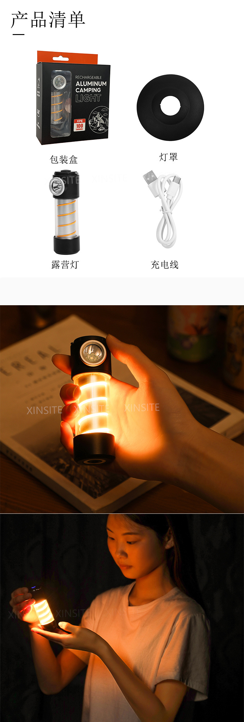 Nuevo transfronterizo Amazon al aire libre camping luz camping Luz Portátil atmósfera luz Edison faro