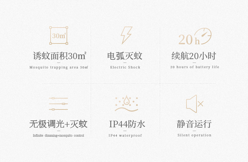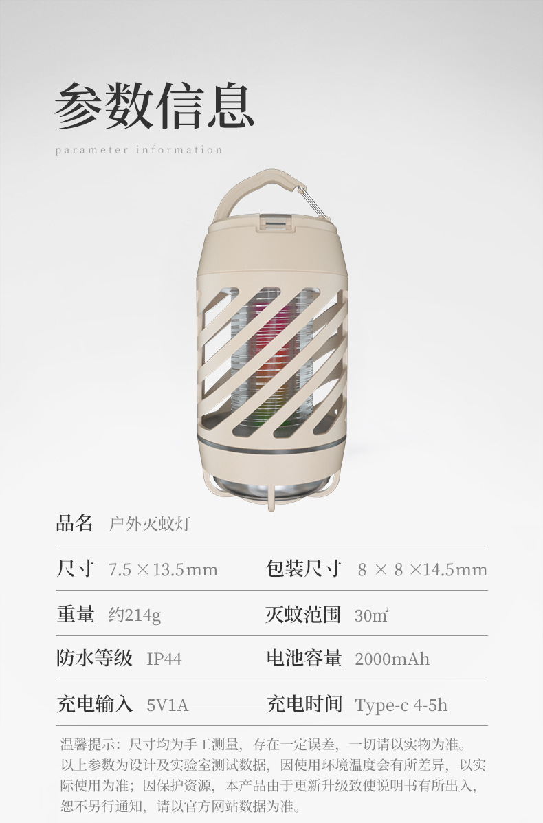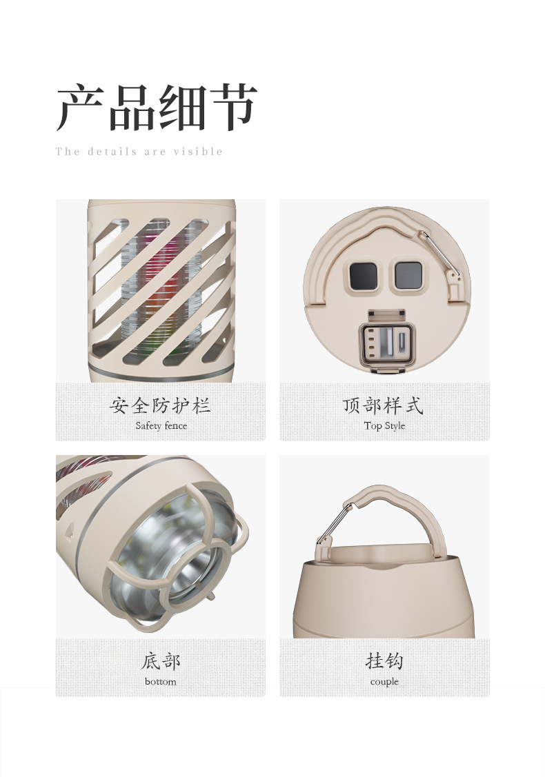 | Color | Luz de camping al aire libre + mosquito asesino beige (2000mAh) |