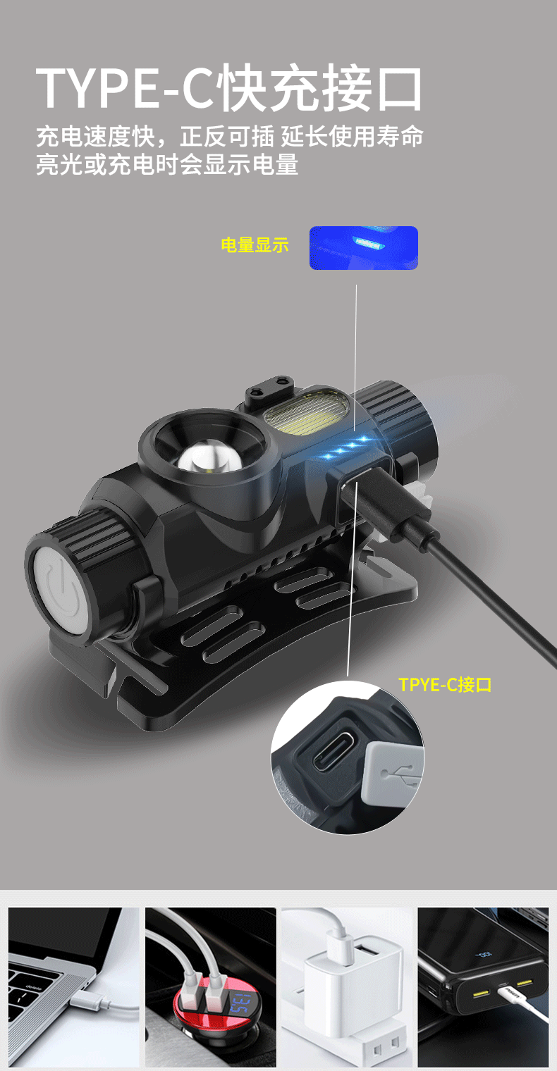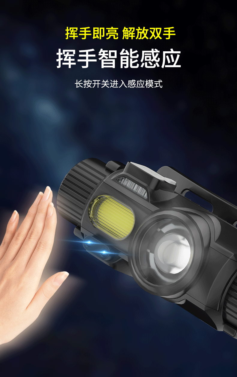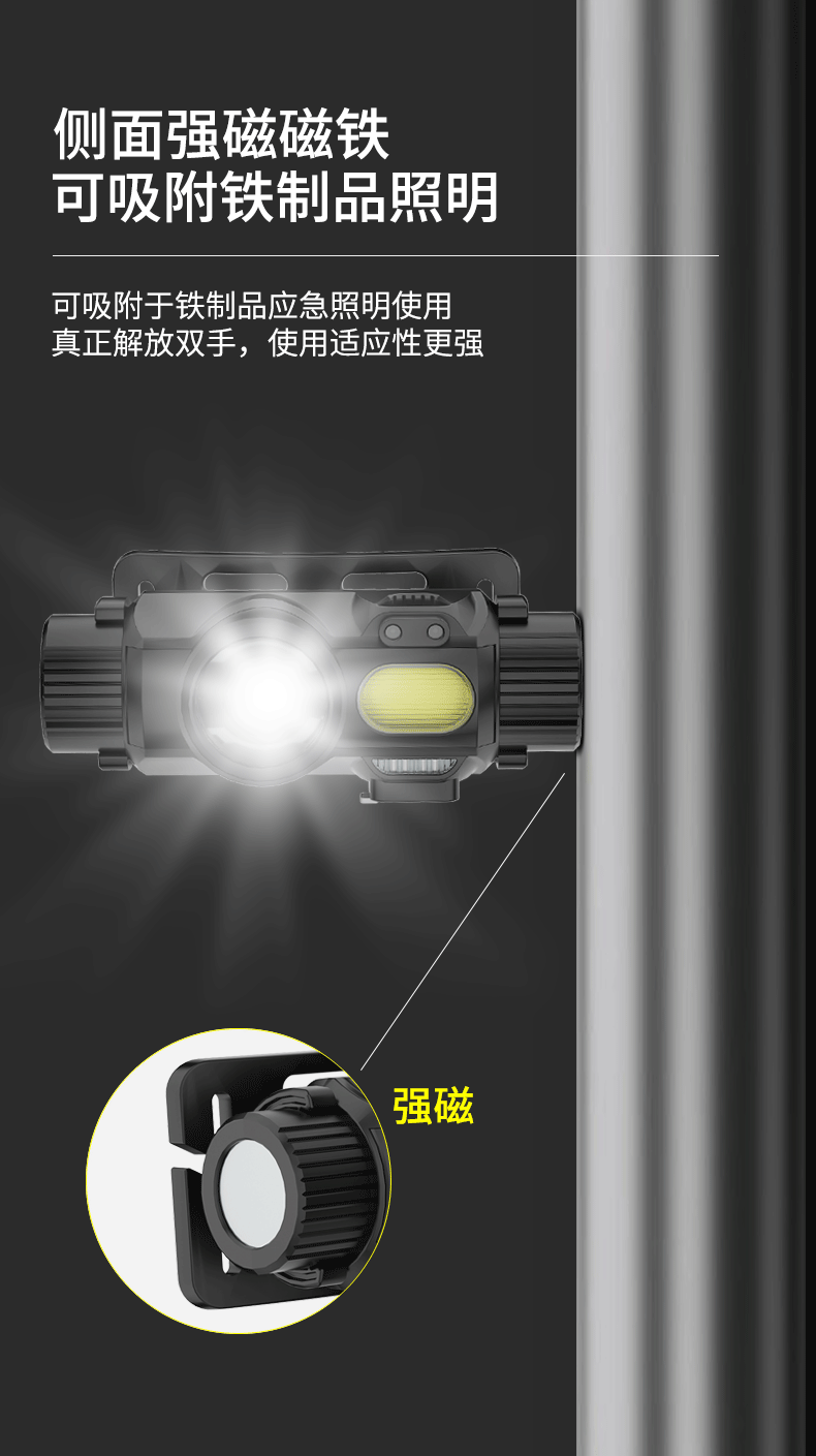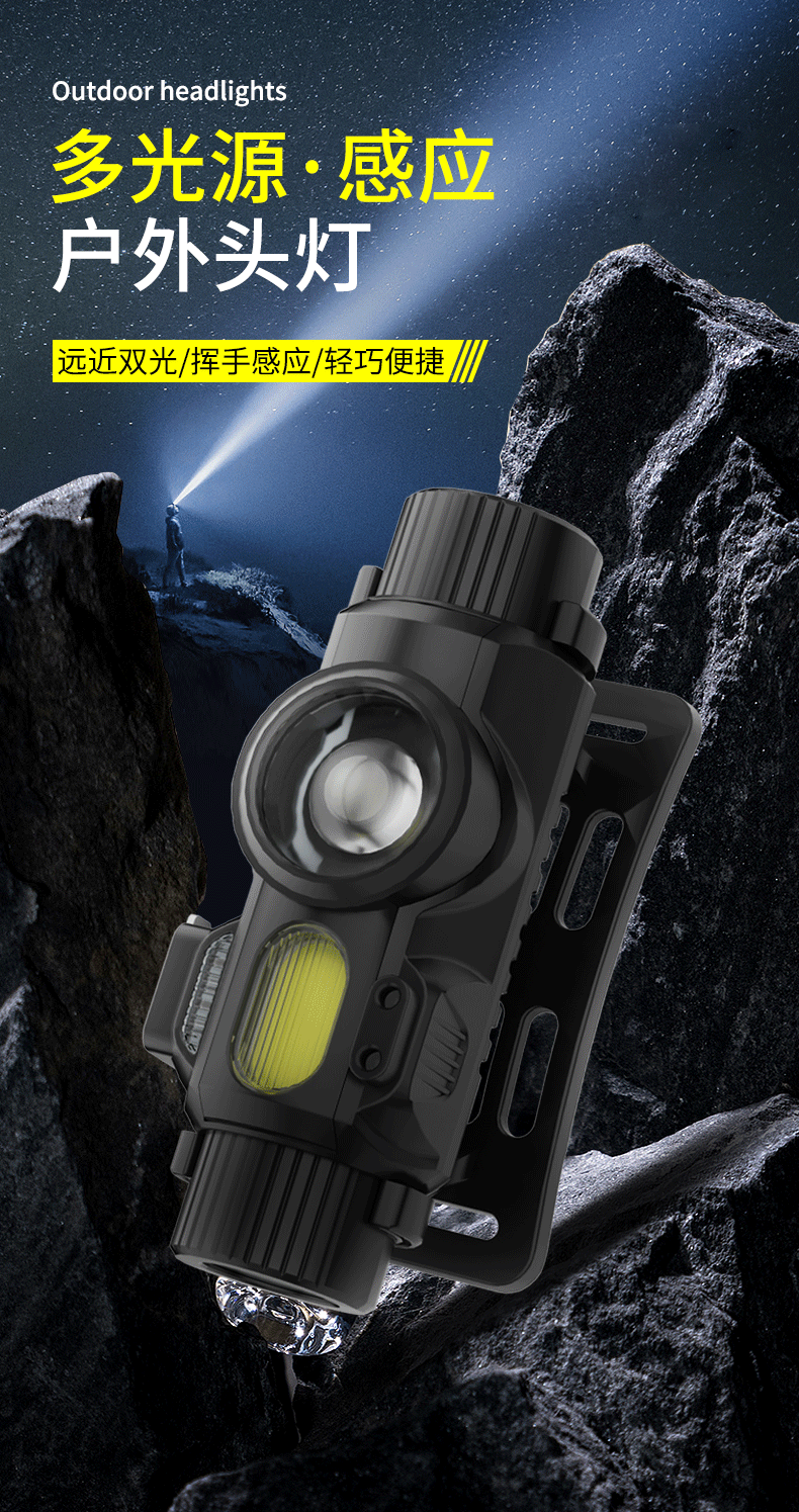 Cross-Border faro montado en la cabeza de inducción de luz fuerte de carga al aire libre compacto de doble fuente de luz de largo alcance LED faro con imán