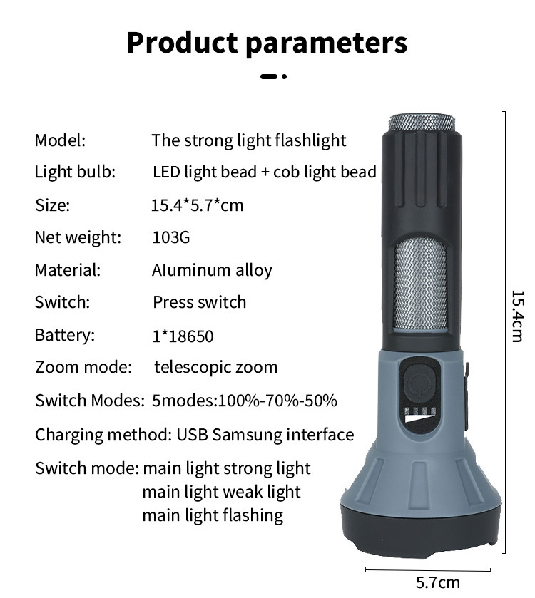 Linterna de foco fijo transfronterizo linterna recargable USB foco portátil de largo alcance Medición de mazorca reflector linterna de salida