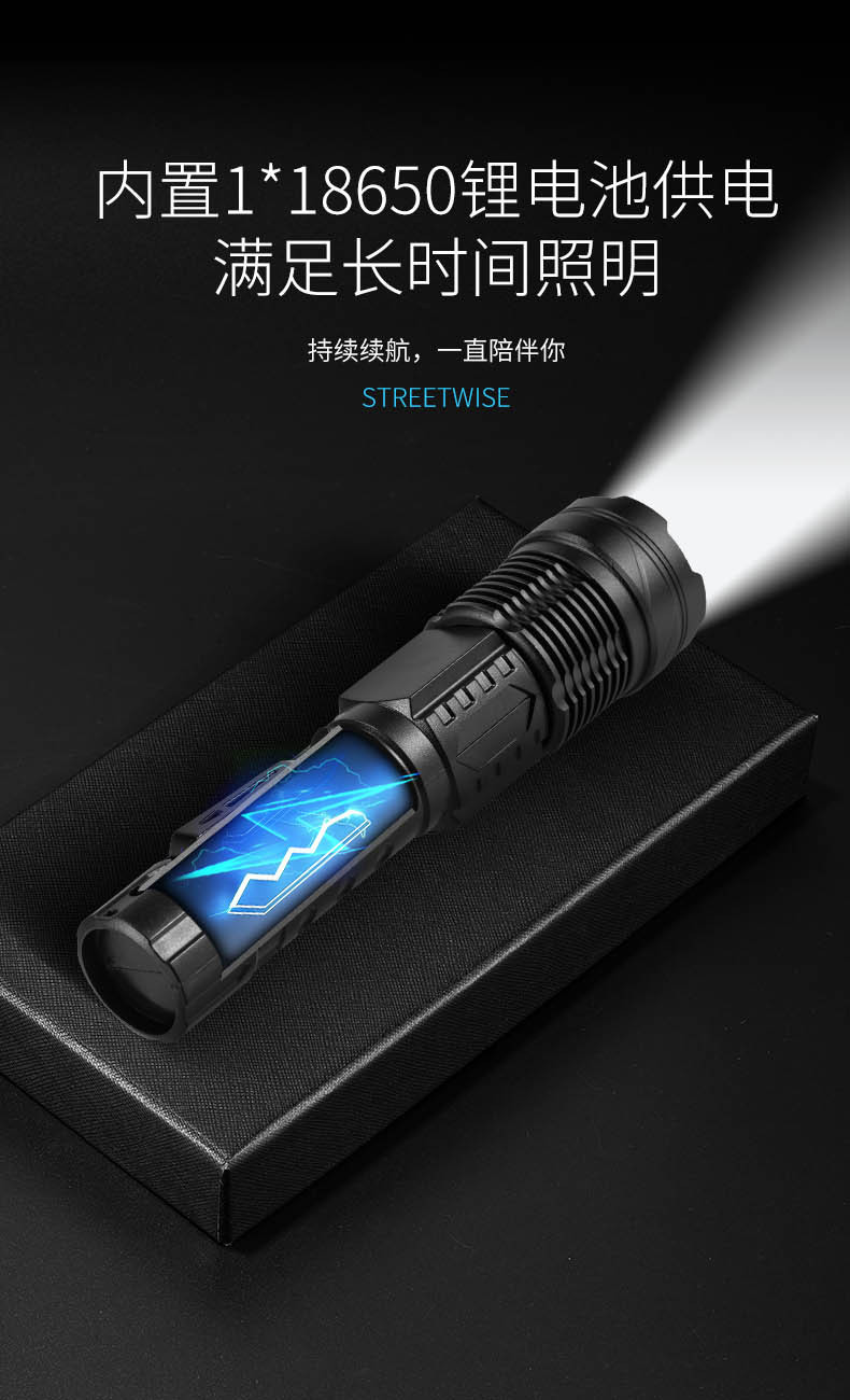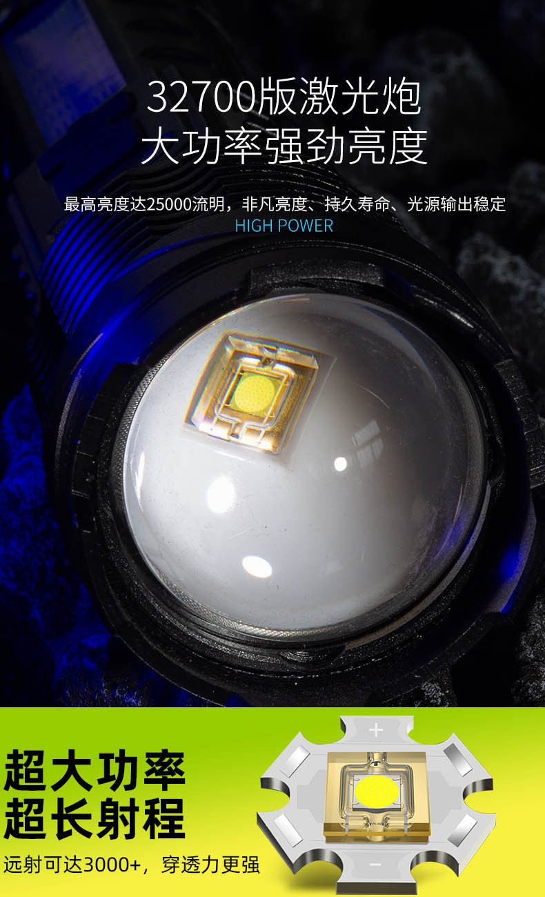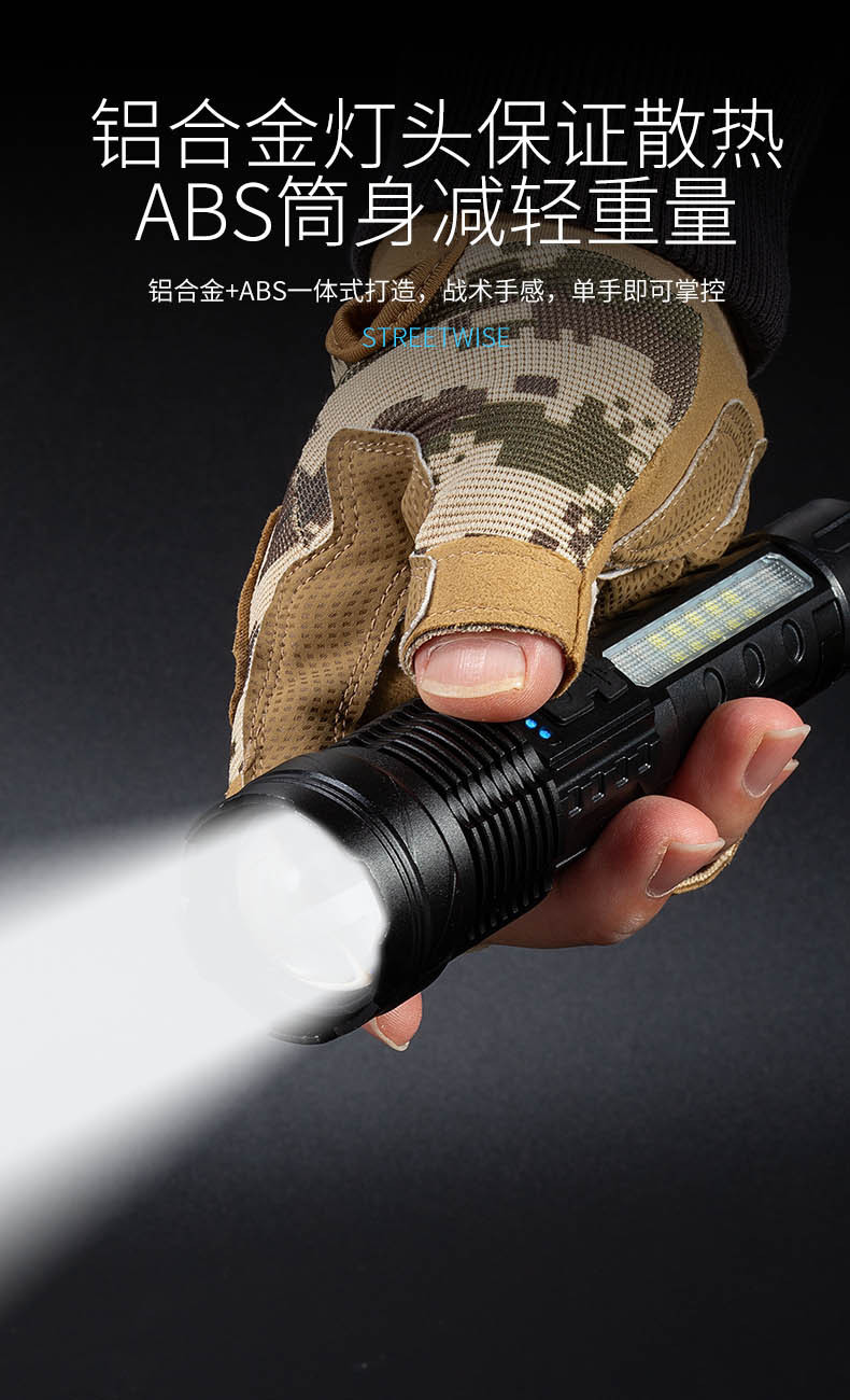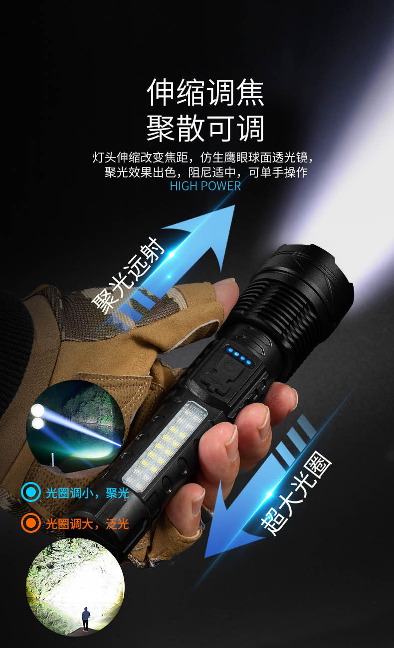 Transfronteriza nueva linterna láser blanco aleación de aluminio zoom remoto al aire libre linterna de luz fuerte batería incorporada de carga