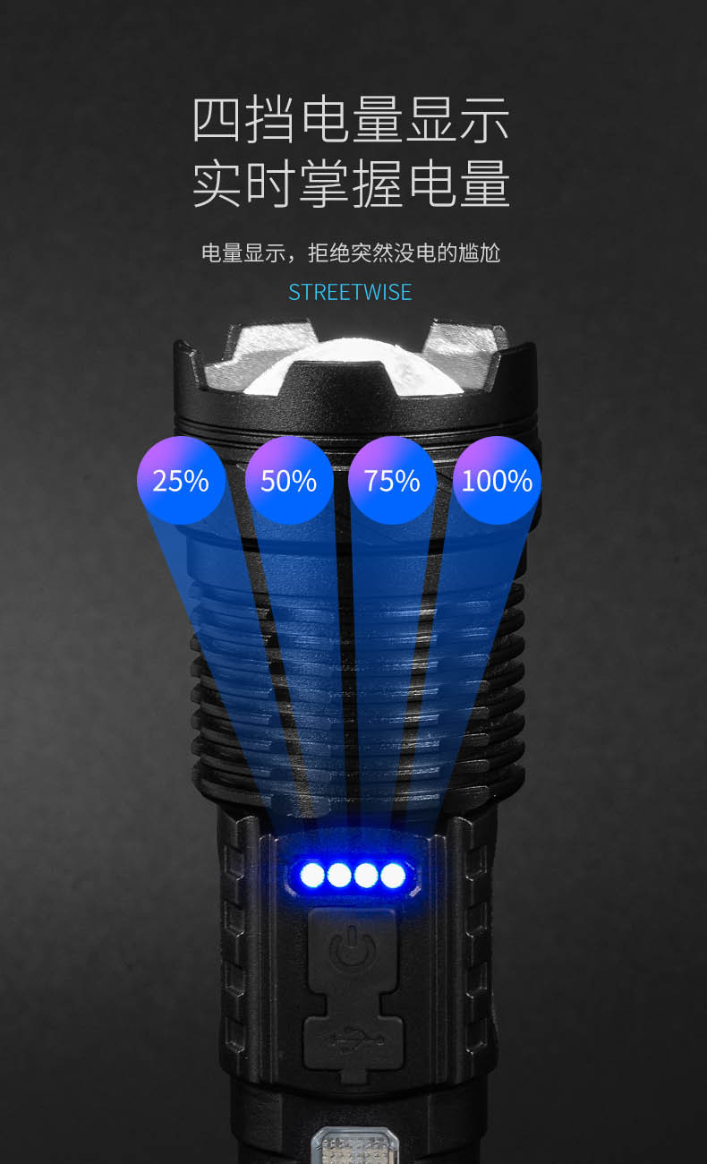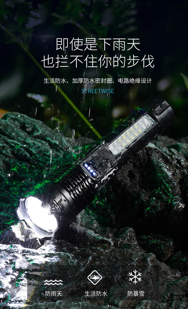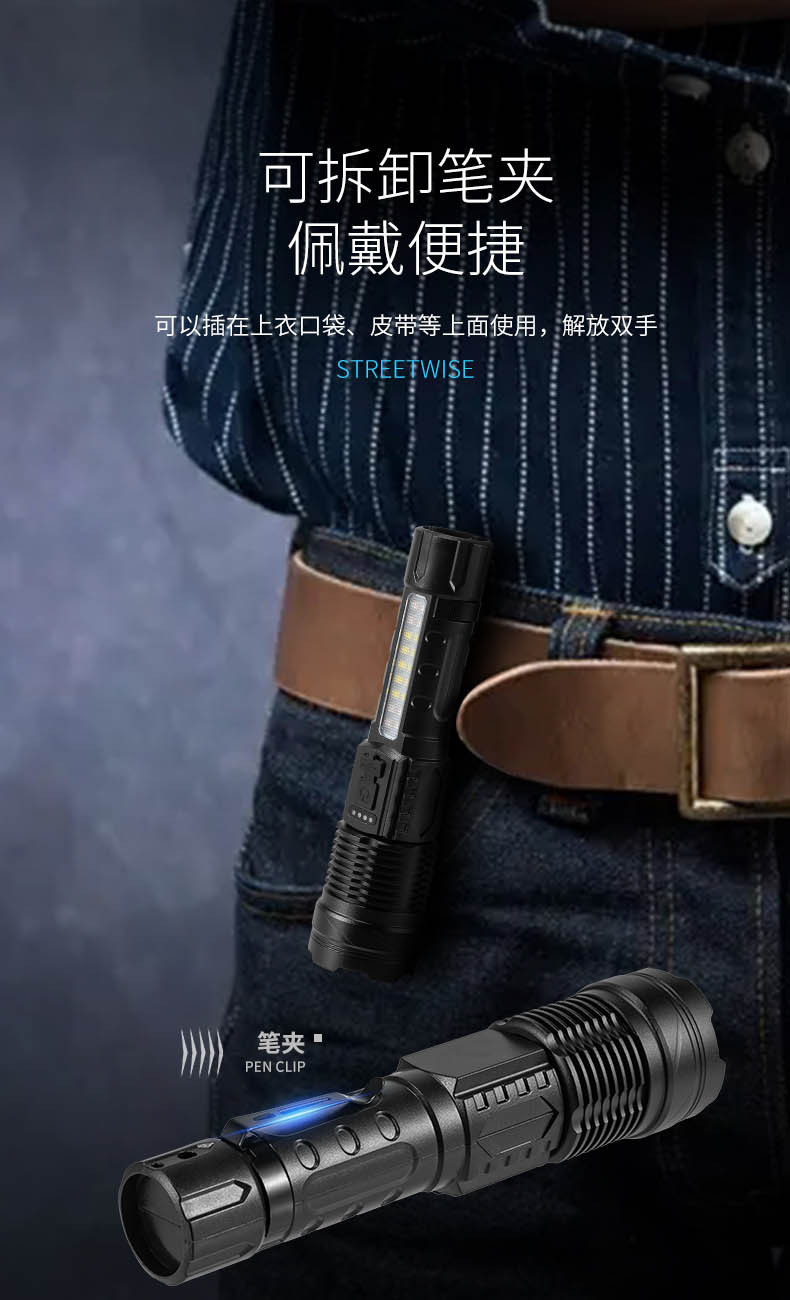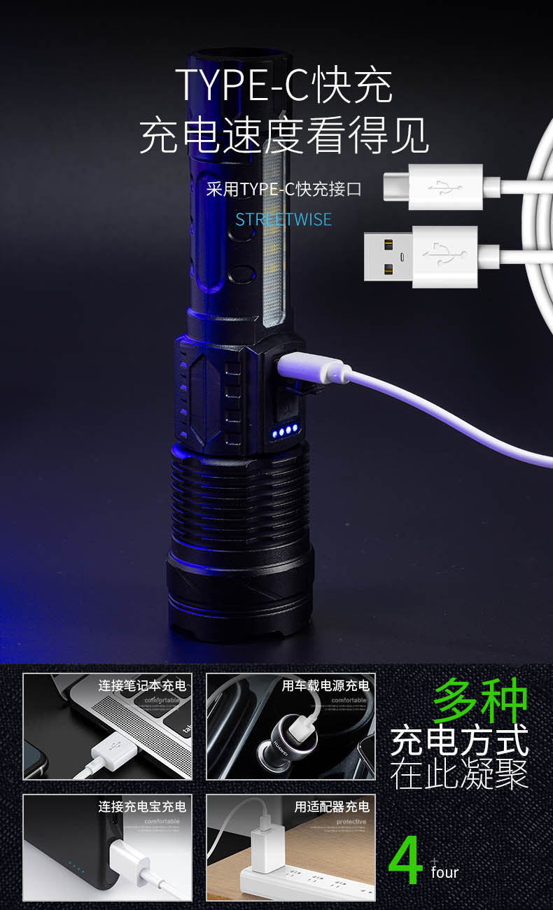 Transfronteriza nueva linterna láser blanco aleación de aluminio zoom remoto al aire libre linterna de luz fuerte batería incorporada de carga