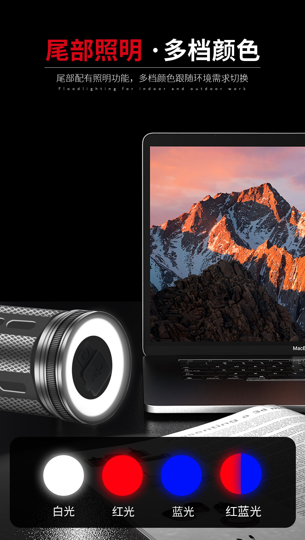 Tiktok caliente transmisión en vivo pequeño cañón de acero láser blanco Cañón de tiro largo linterna trasera cuatro fuente de luz principal luz larga Prensa