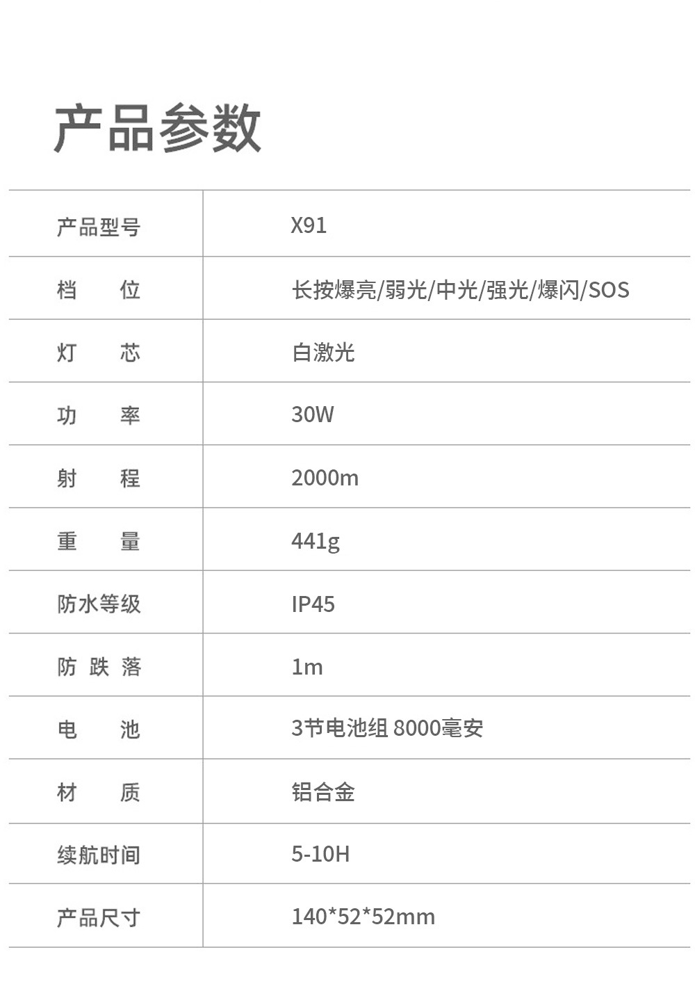 | Color | X91 [GT10 láser blanco; Batería de capacidad incorporada 8000 3 18650] |