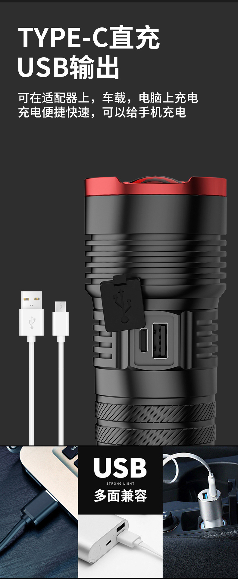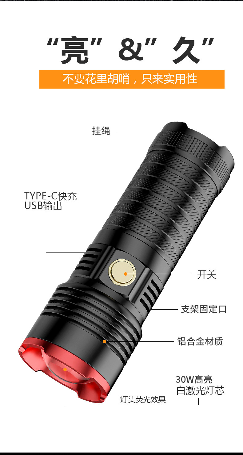 Linterna láser blanco táctico fuerte luz al aire libre de carga Super brillante patrulla Casa de emergencia linterna luz de trabajo tiro largo