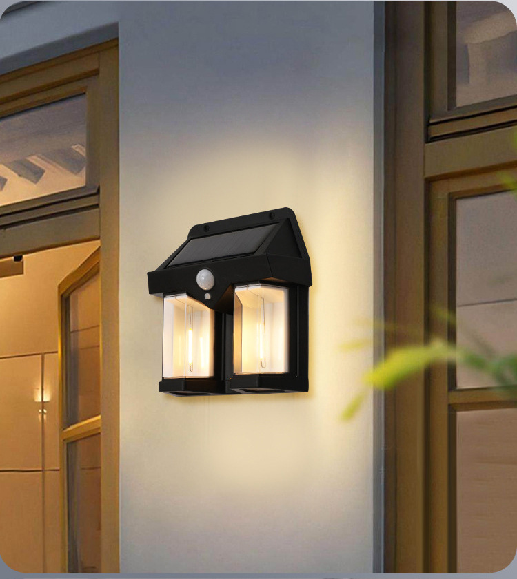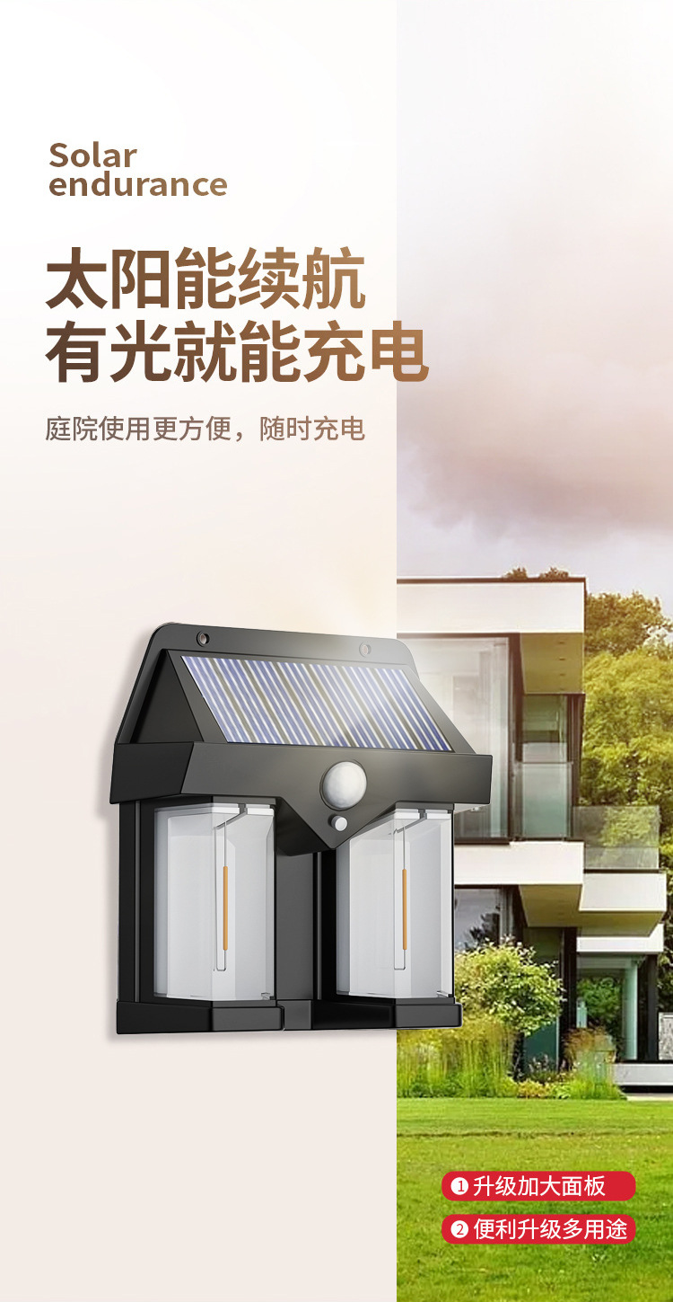 Transfronteriza nueva lámpara de pared solar al aire libre inducción hogar Cableado-libre jardín lámpara de jardín impermeable doble fuente de luz