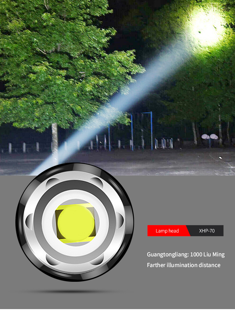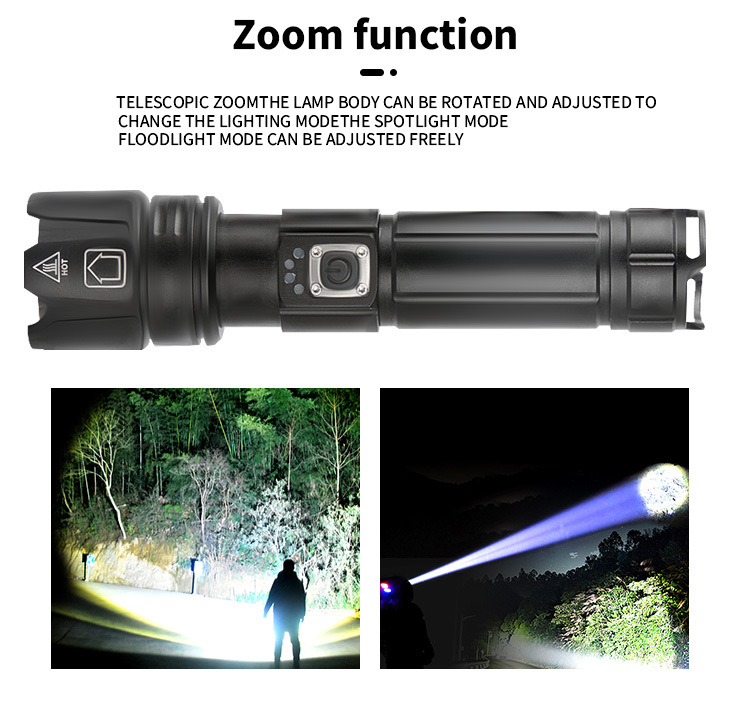 Cross-border XHP70 + COB linterna de Luz Blanca Roja zoom P70 linterna recargable USB