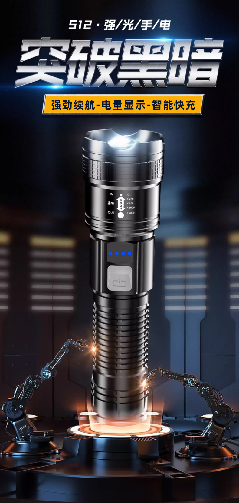 Nuevo transfronterizo aurora blanca multifuncional zoom telescópico p50 linterna de luz intensa iluminación linterna de luz intensa visualización eléctrica