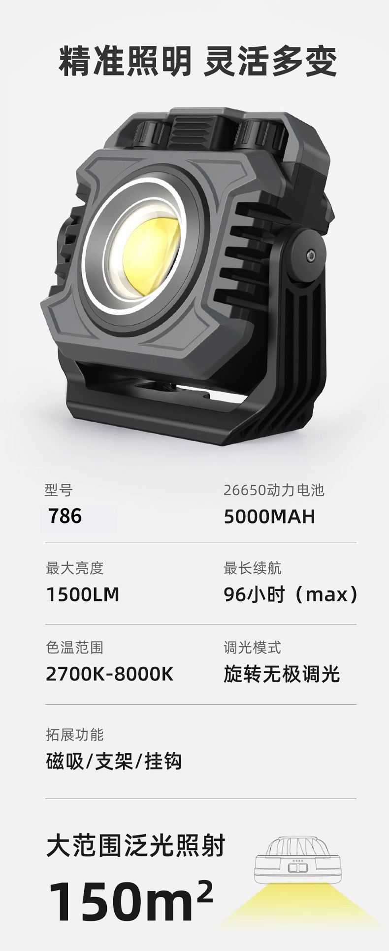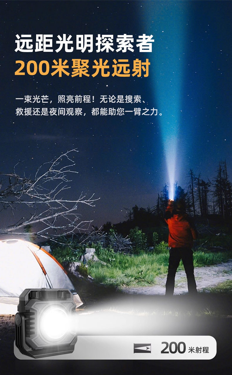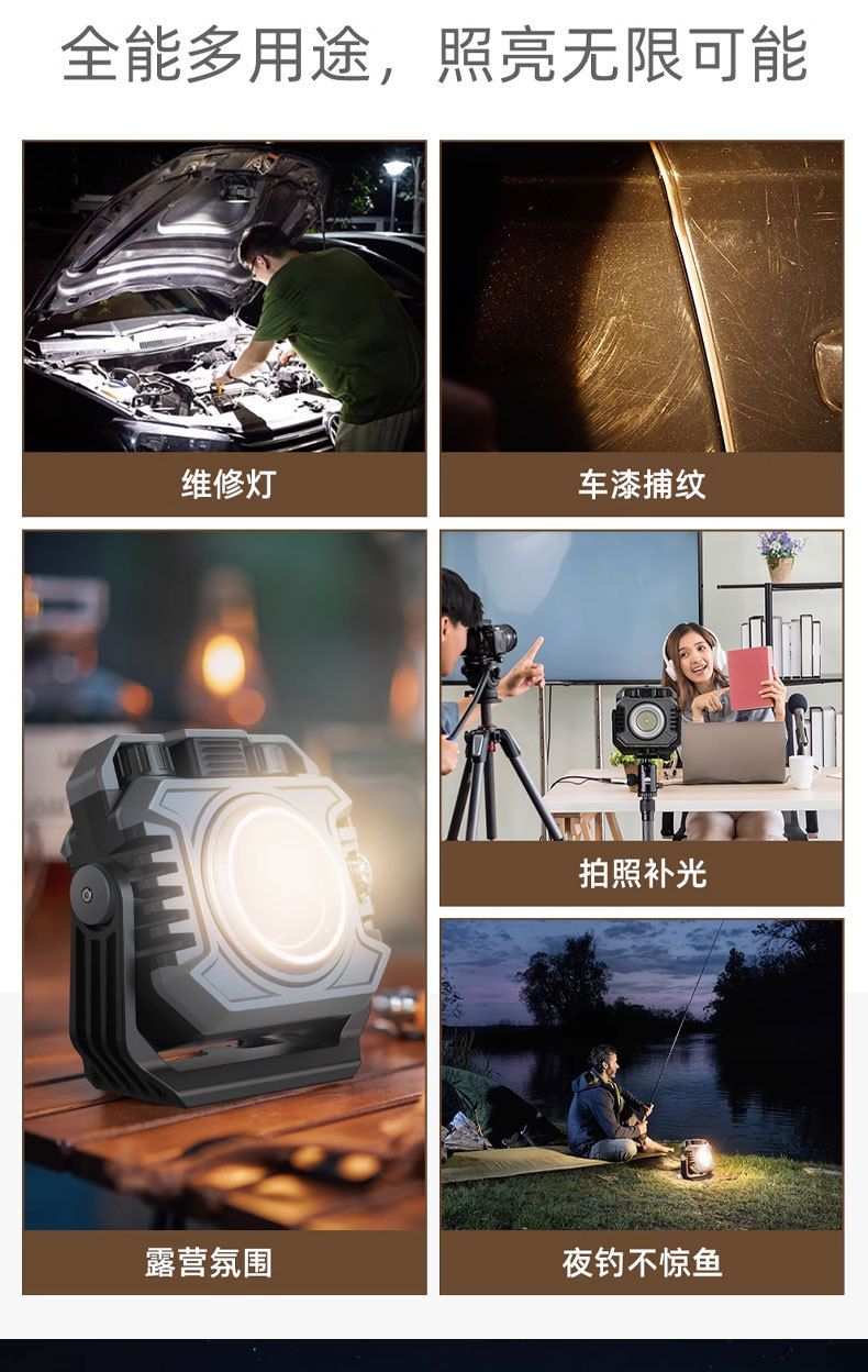 Lámpara de trabajo de luz intensa transfronteriza al aire libre lámpara de camping ultra brillante portátil portátil de larga duración de carga magnética lámpara de mantenimiento de automóviles