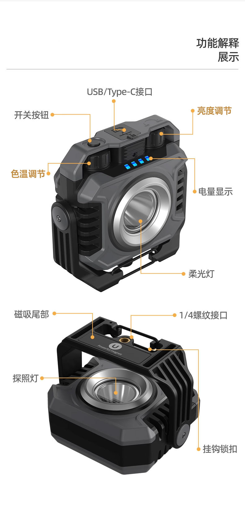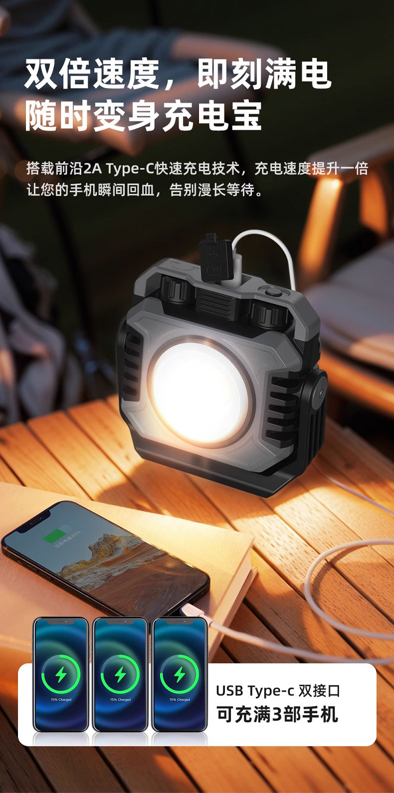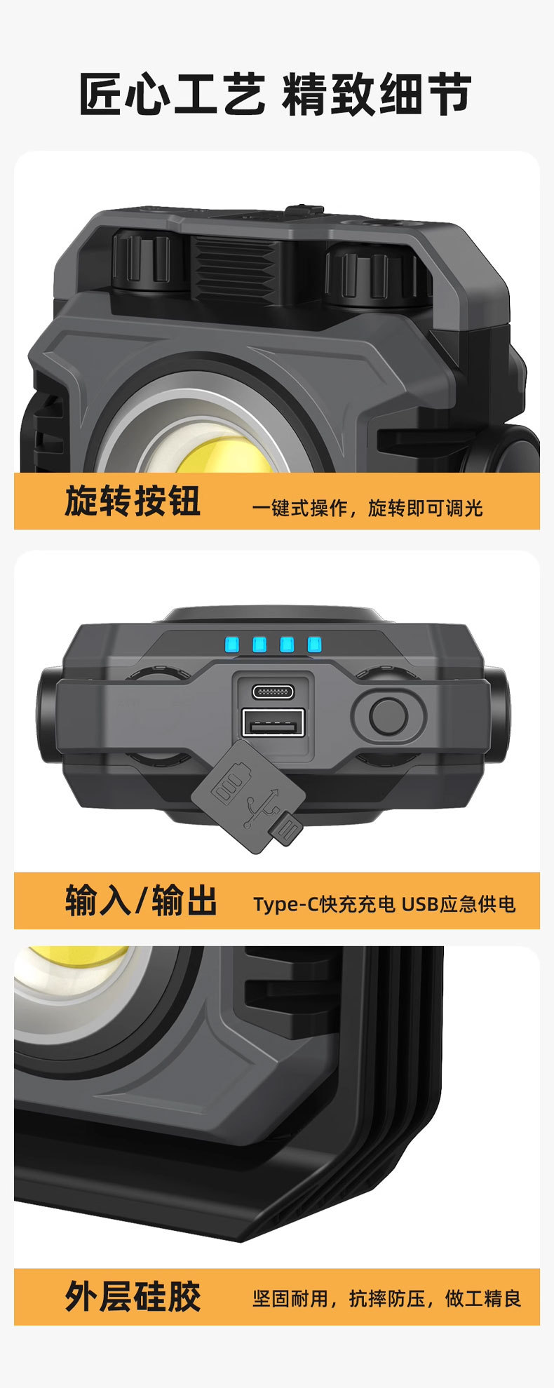 Lámpara de trabajo de luz intensa transfronteriza al aire libre lámpara de camping ultra brillante portátil portátil de larga duración de carga magnética lámpara de mantenimiento de automóviles