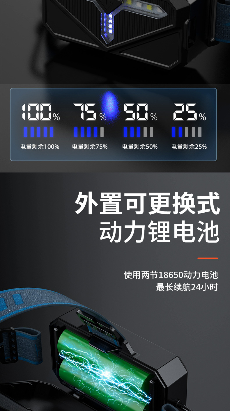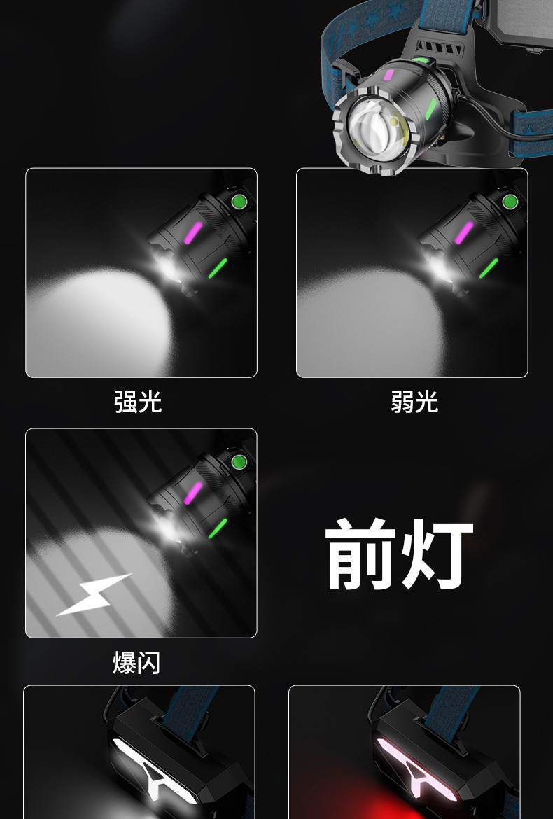 Luz intensa LED de pesca nocturna recarga remota luz de pesca nocturna faro de campamento al aire libre lámpara de mina batería de litio sonoro antorcha montada en la cabeza