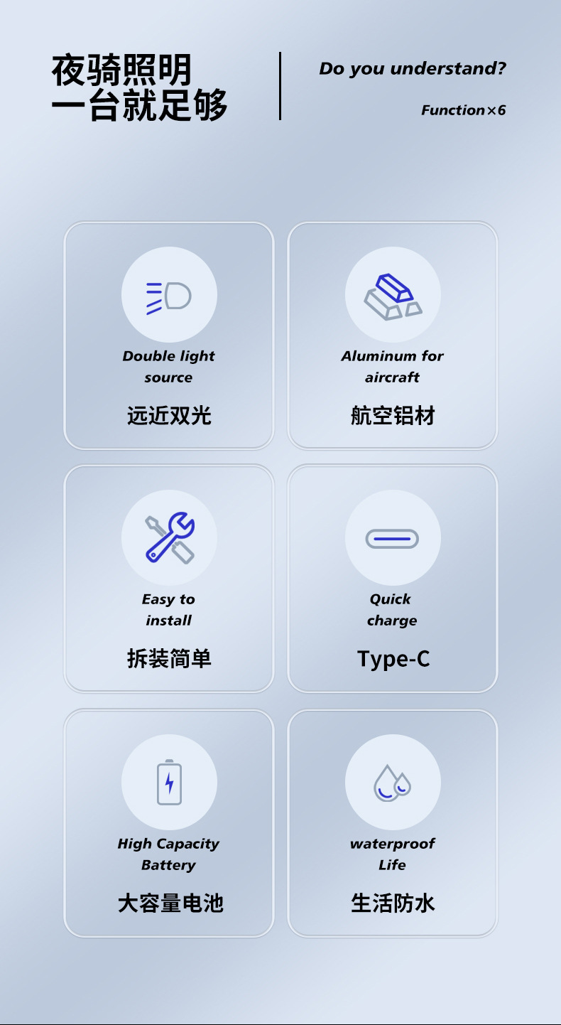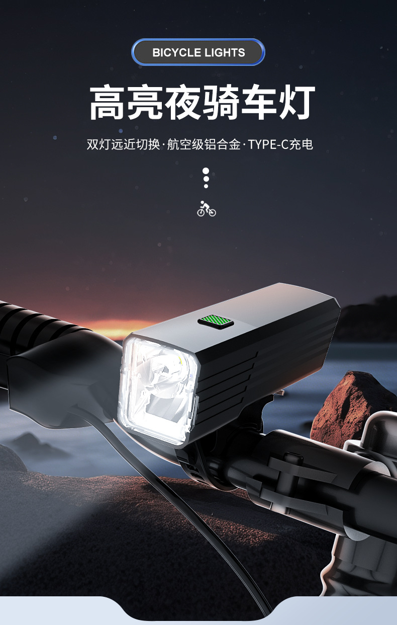Luz de bicicleta de aleación de aluminio doble fuente de luz antideslumbrante luz de bicicleta de noche luz fuerte luz delantera de bicicleta luz de conmutación de luz de viaje