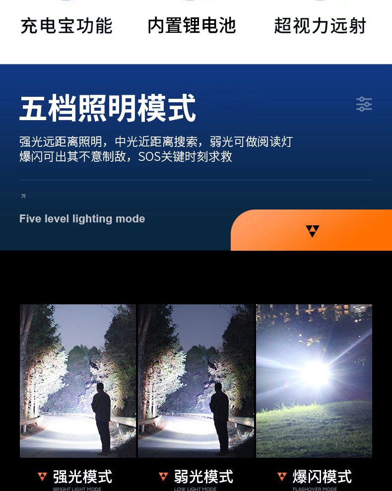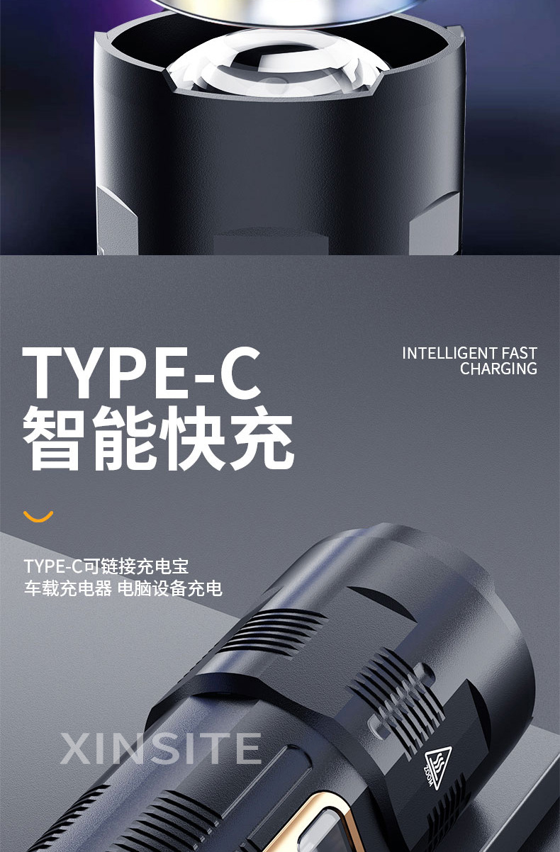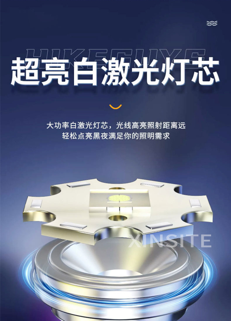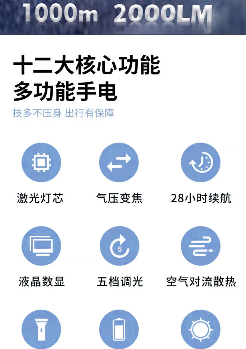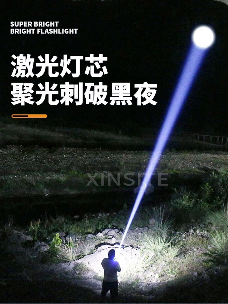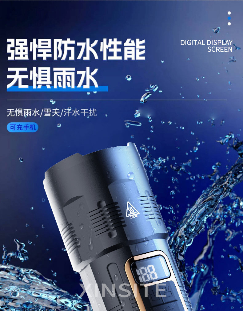 Lintera multifuncional transfronteriza con un concentrador de luz fuerte al aire libre con zoom de pantalla digital recargable 20 vatios linterna láser blanca