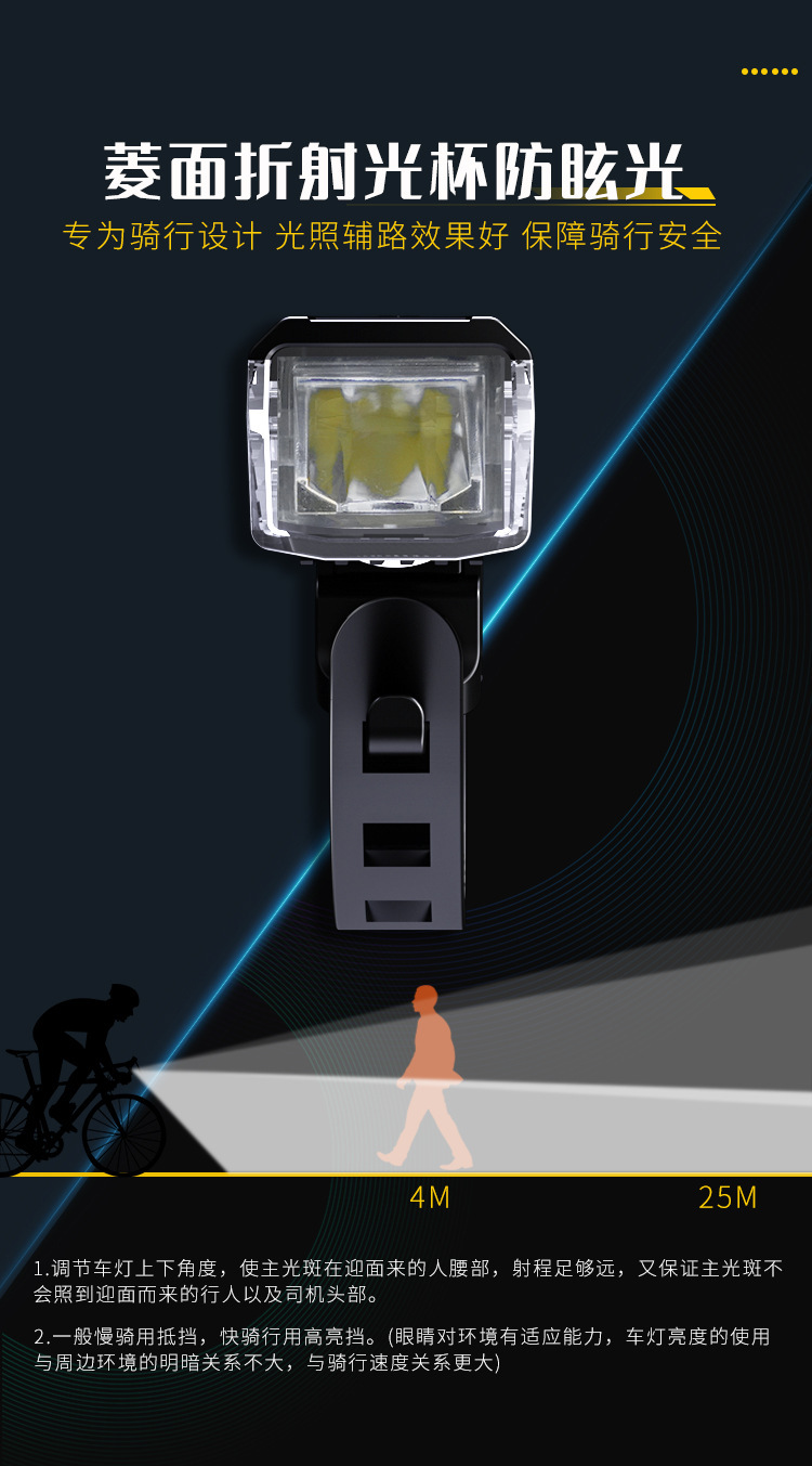Luz inteligente de luz de bicicleta luz de viaje nocturno USB recargable luz de cola única luz delantera accesorios de equipo de viaje