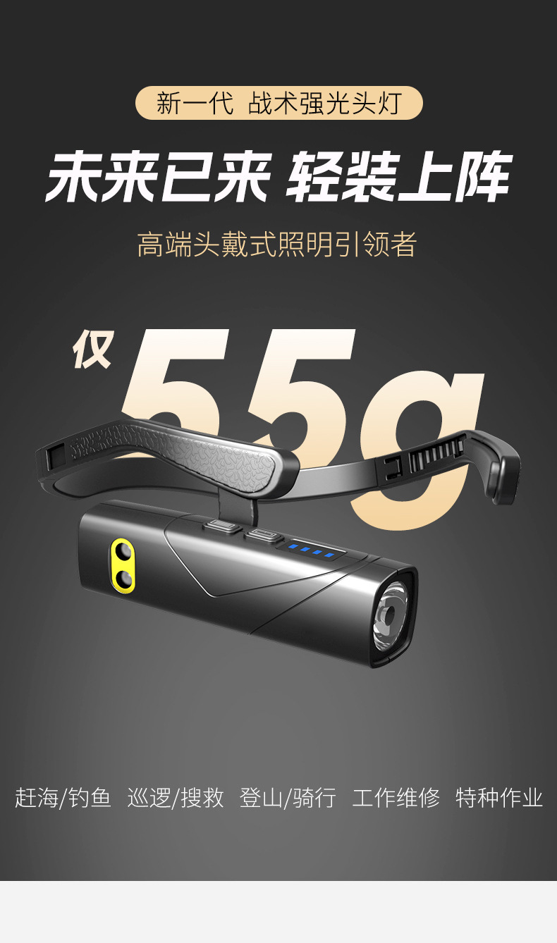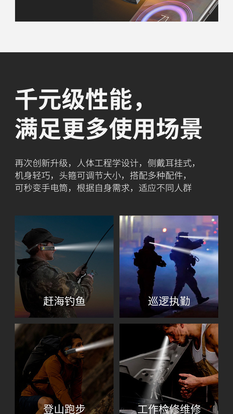 Transfronterizo nuevo tipo de oreja colgante lateral inducción faro extraíble antorcha portátil ligera noche pescar faro lámpara de mina