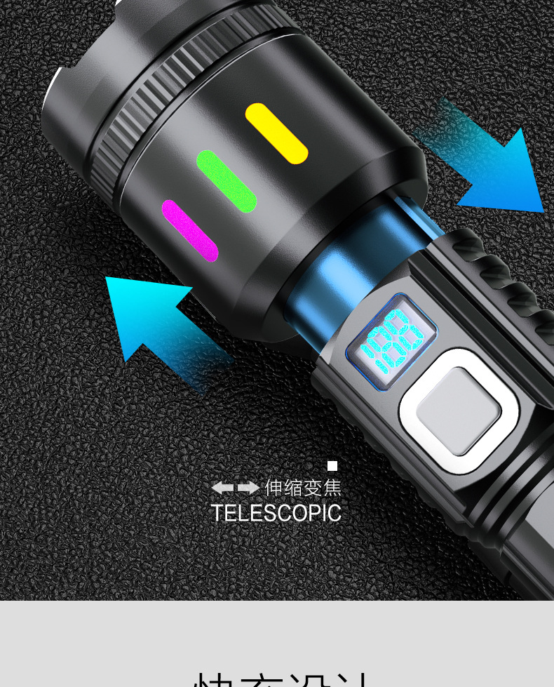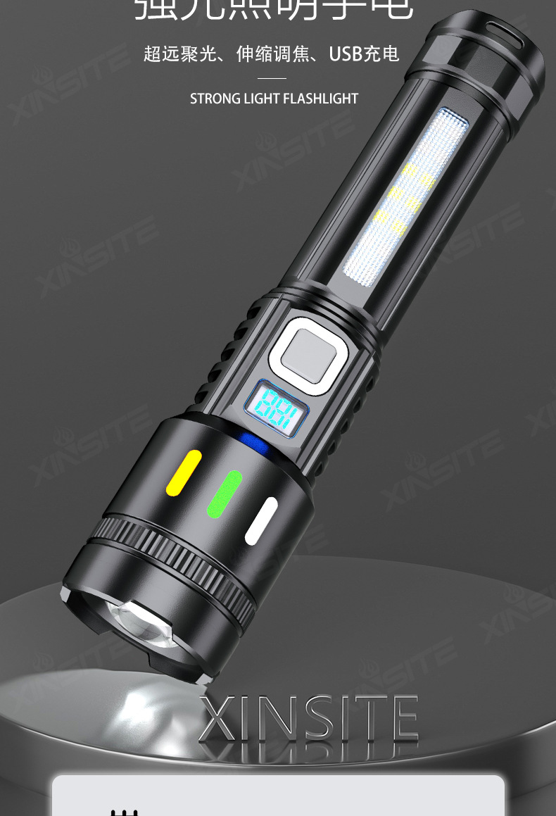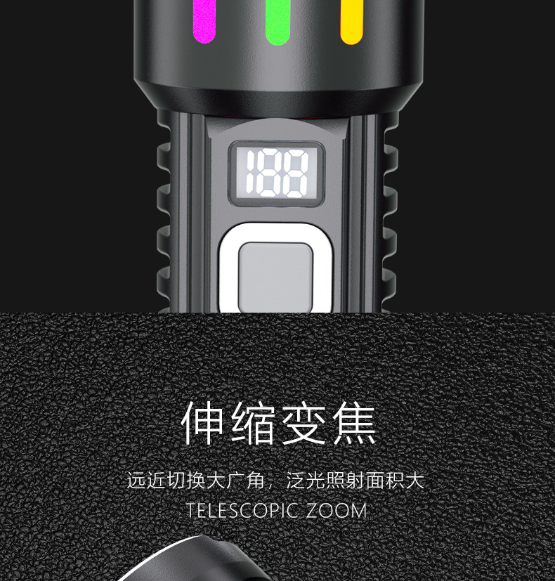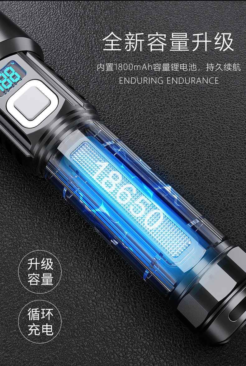 Nueva linterna LED multifuncional láser blanco gran linterna de inundación al aire libre larga duración linterna de pantalla digital multifuncional
