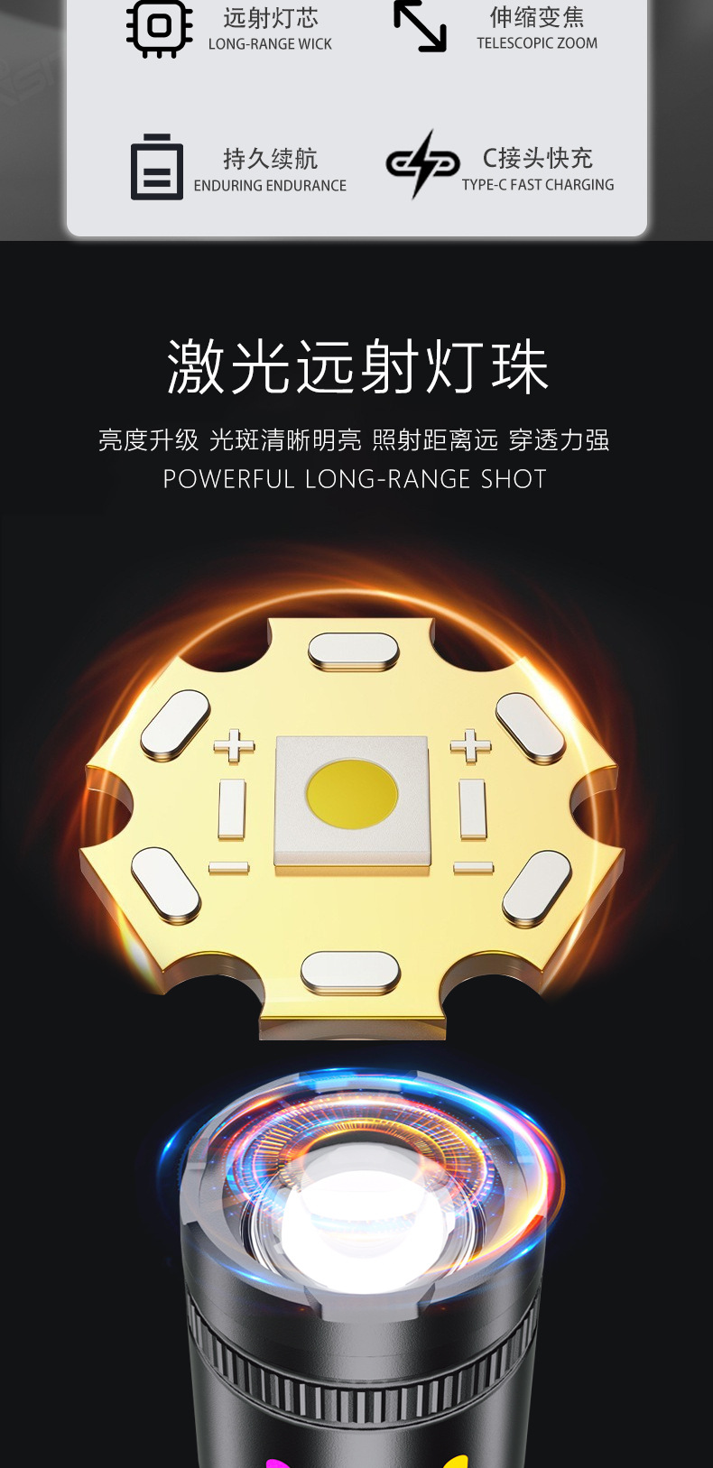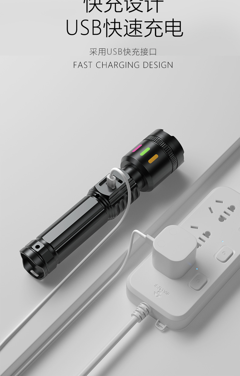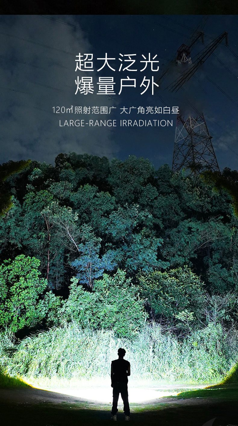 Nueva linterna LED multifuncional láser blanco gran linterna de inundación al aire libre larga duración linterna de pantalla digital multifuncional