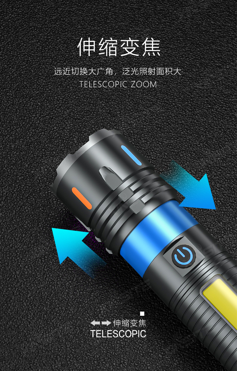 Linterna de carga multifuncional al aire libre ultra brillante concentrador láser blanco portátil luz intensa linterna lateral luz