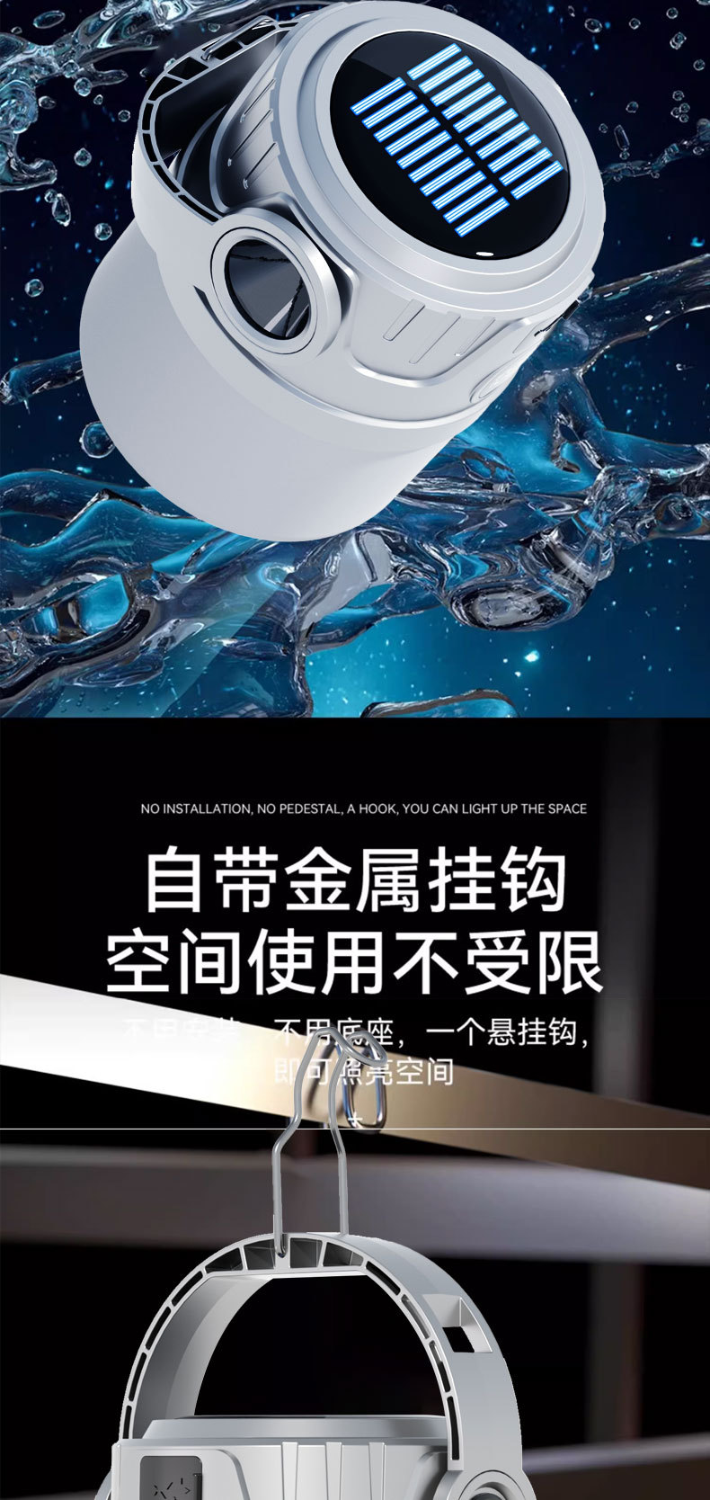 Lámpara de lámpara solar lámpara de iluminación lámpara USB recargable lámpara de mercado nocturno lámpara al aire libre lámpara de campamento al aire libre carga